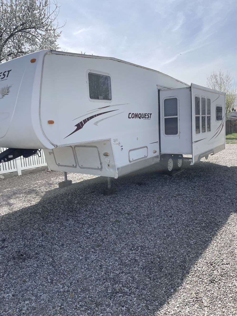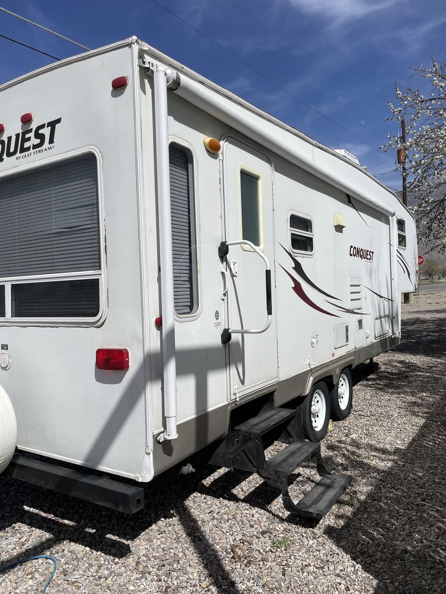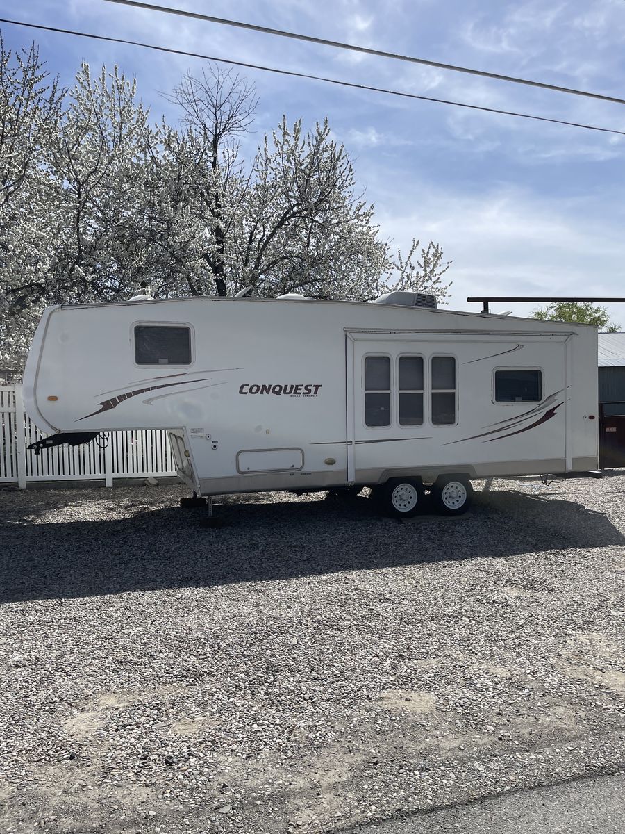VenmoI have a 2010 Conquest 245FBW 5th wheel travel trailer for sale. This trailer is in good shape, no leaks, all appliances work as they should, 12’ slide out, AC and heater work well, 45 gallon water tank, 6 gallon hot water heater with electronic igniter, tires have plenty of tread, queen bed, privacy curtains, 21’ awning, 28.5’ overall length. Clean title in hand. Let me know if you have any questions. Thanks