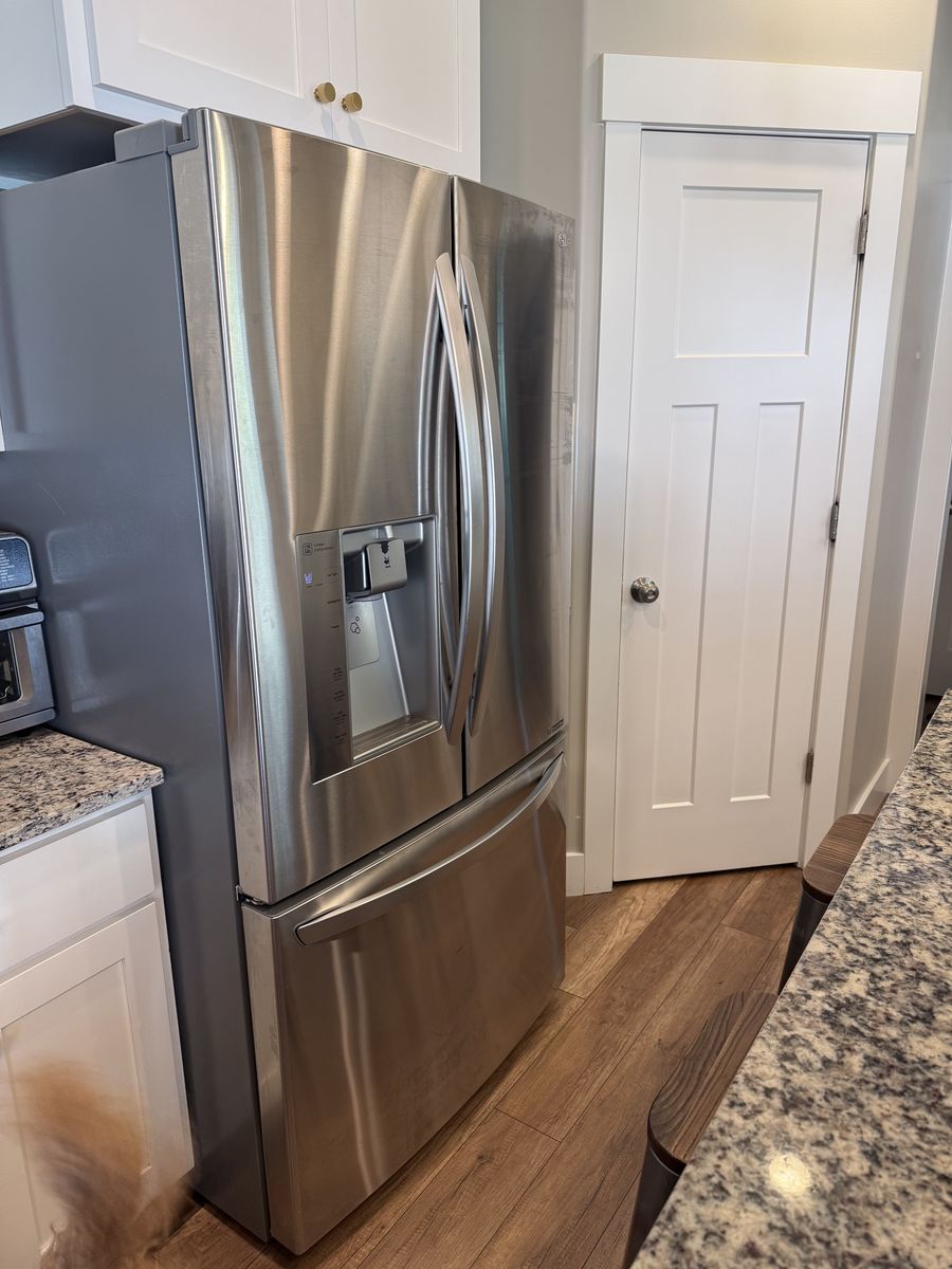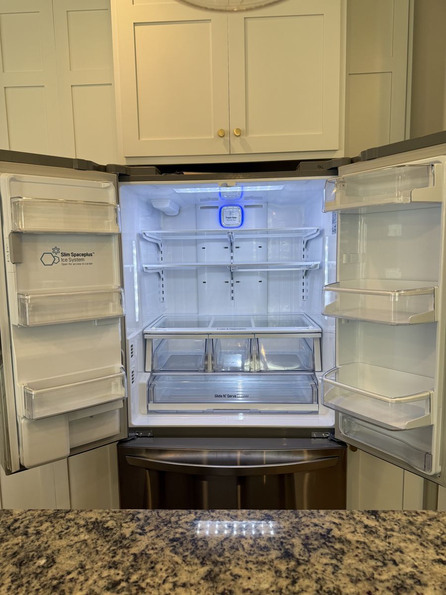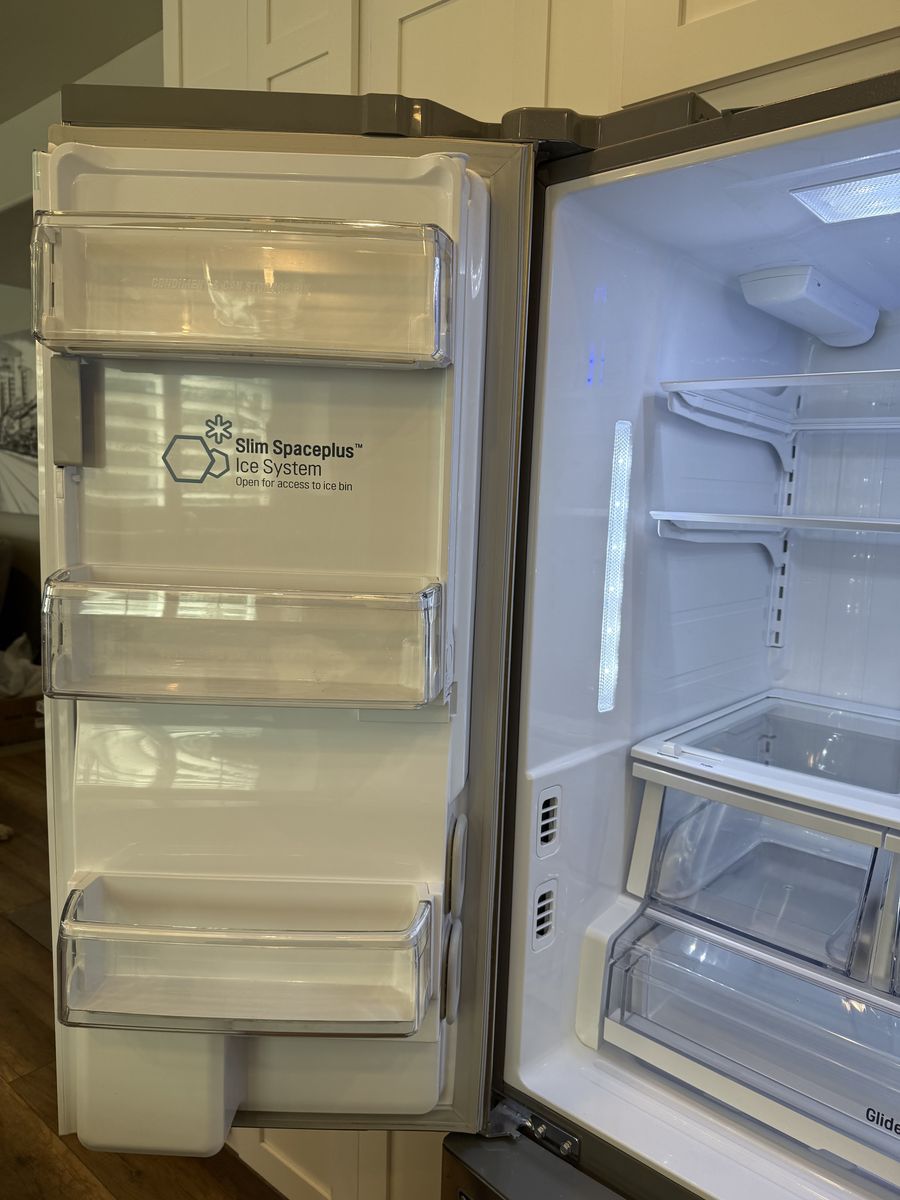 VenmoClean, in good condition. Works perfectly. Has water and ice in the door and an ice maker in the freezer drawer. Standard size.