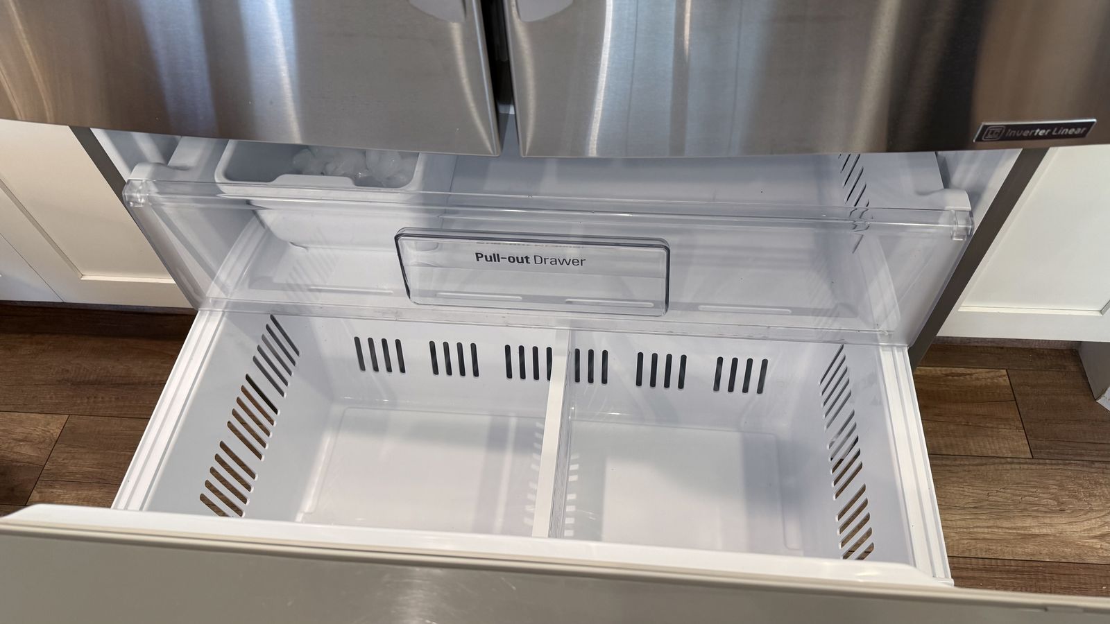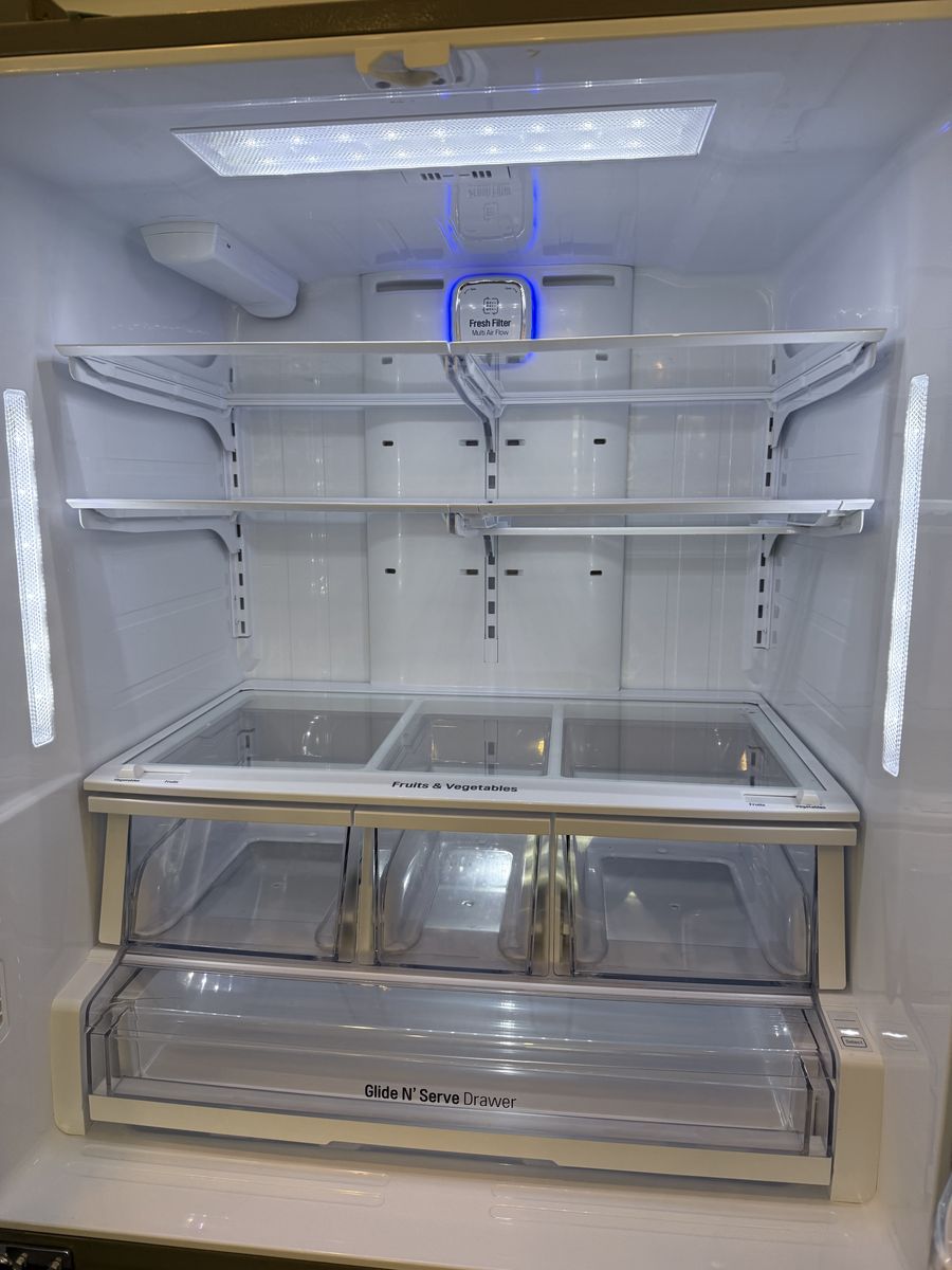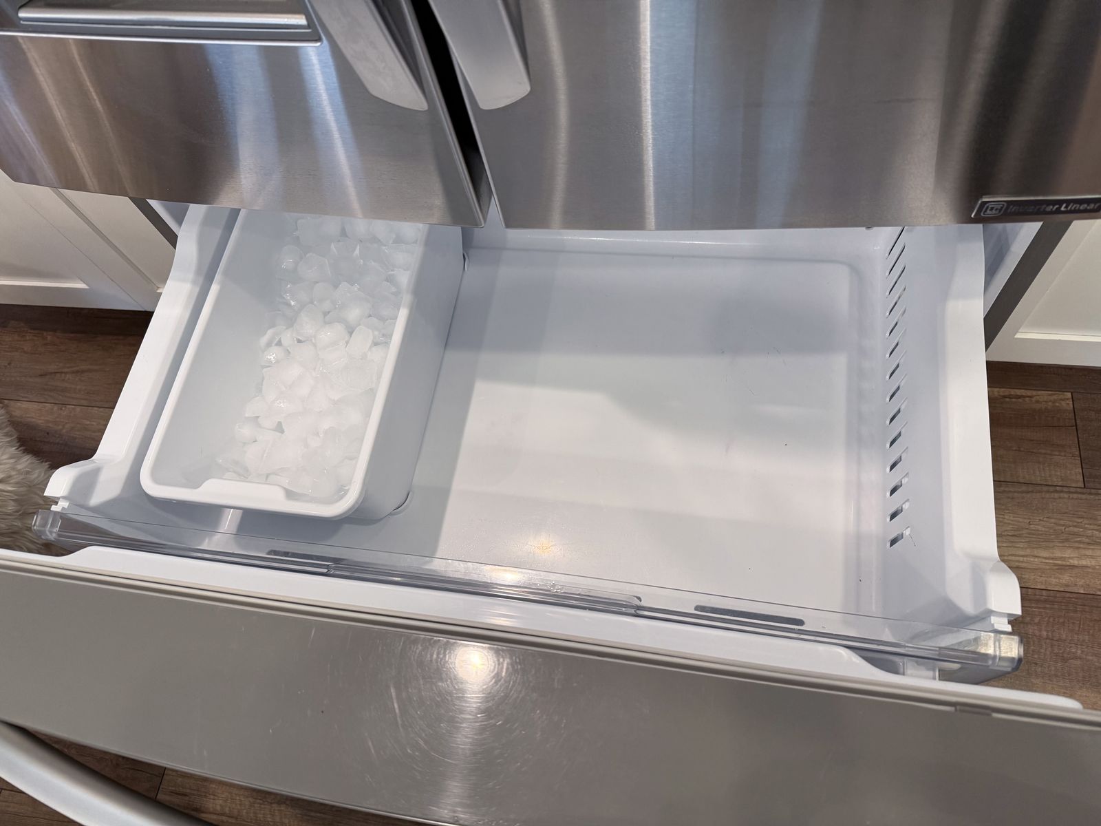 VenmoClean, in good condition. Works perfectly. Has water and ice in the door and an ice maker in the freezer drawer. Standard size.