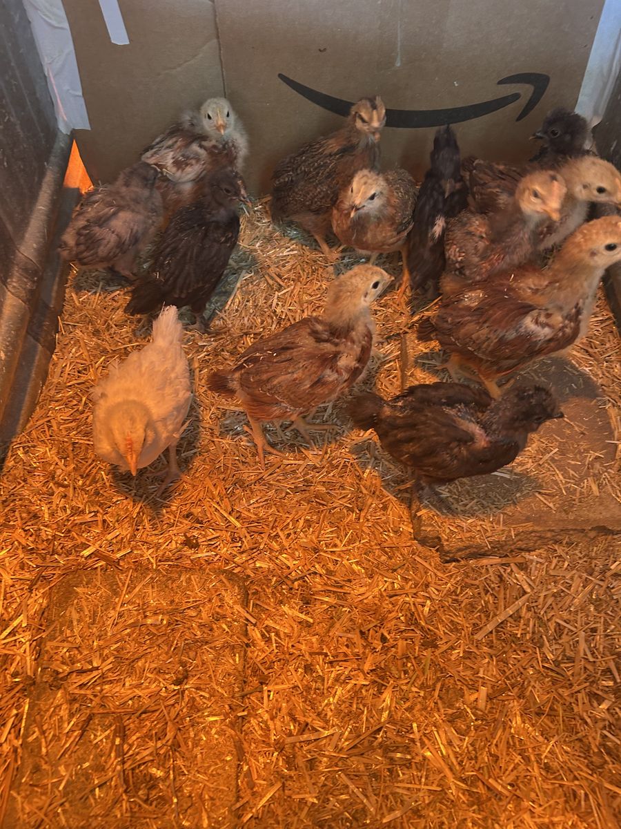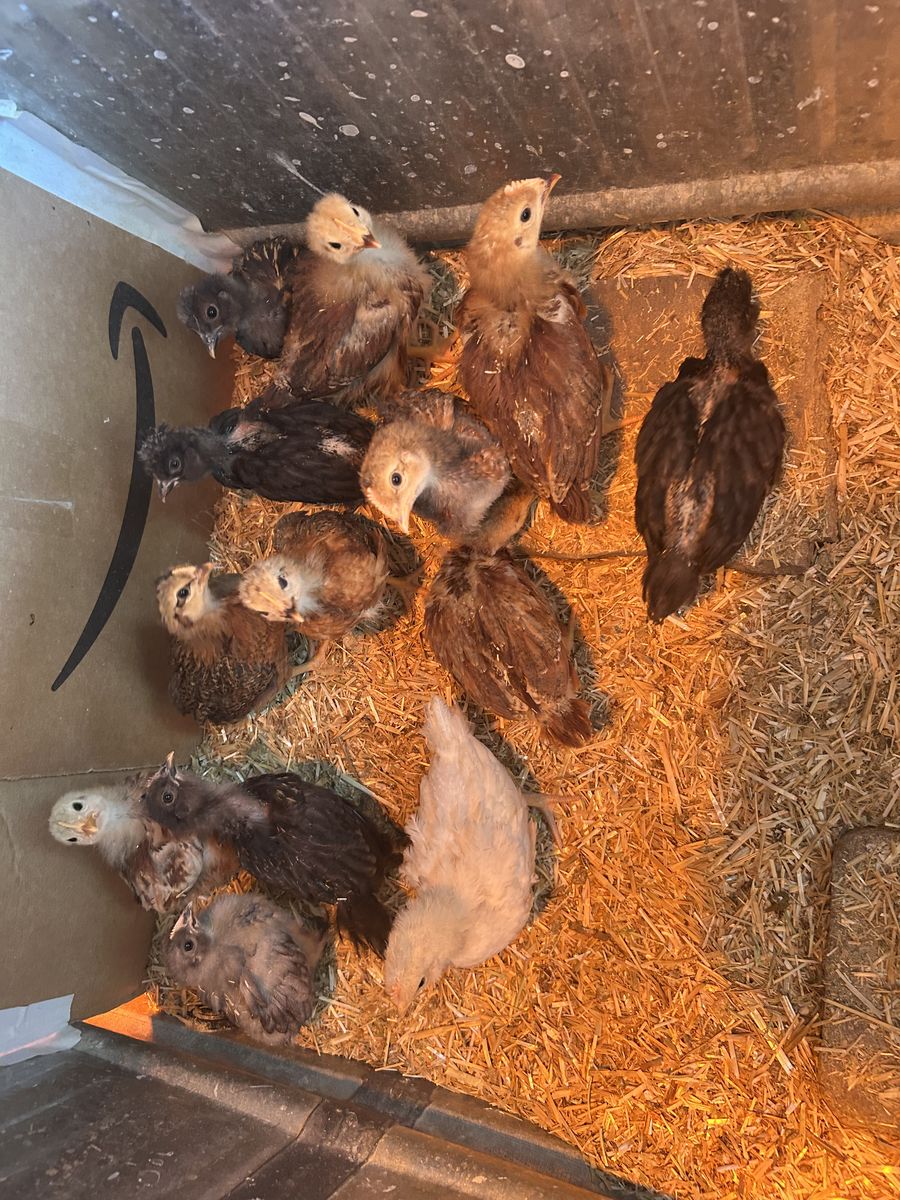 VenmoAll hatched March 2nd. They are getting older and too big for their container. They are either Rhode Island Red, silkies, bantams, Polish, orbingtons, Plymouth Rock, Sussex Brahma, Jersey giants, and more. We can tell you what we think they are once you pick them out and we can do our best to gender them but it won’t be 100% correct since they are at the age it’s a lot harder to tell