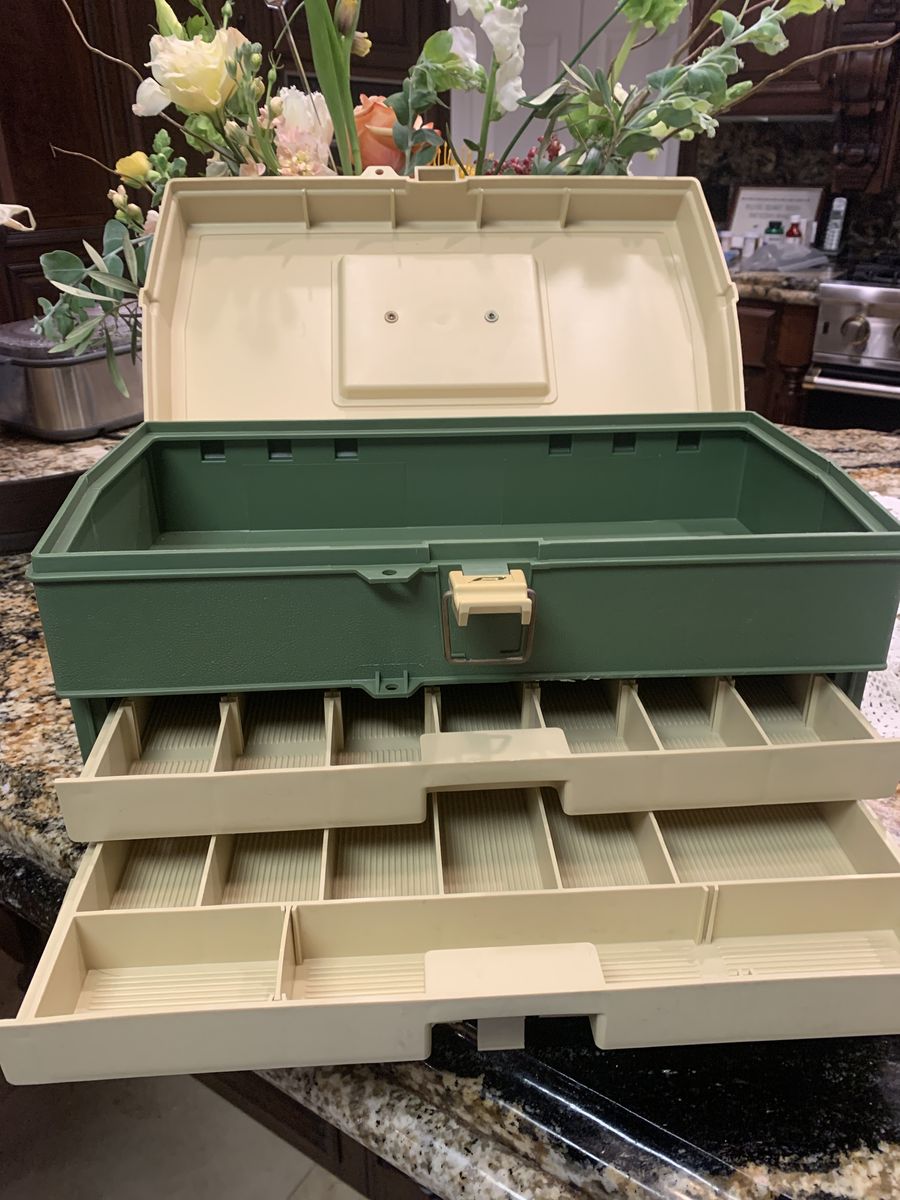 New never used Plano 707 tackle box made of durable plastic and features 3 compartments . $35.