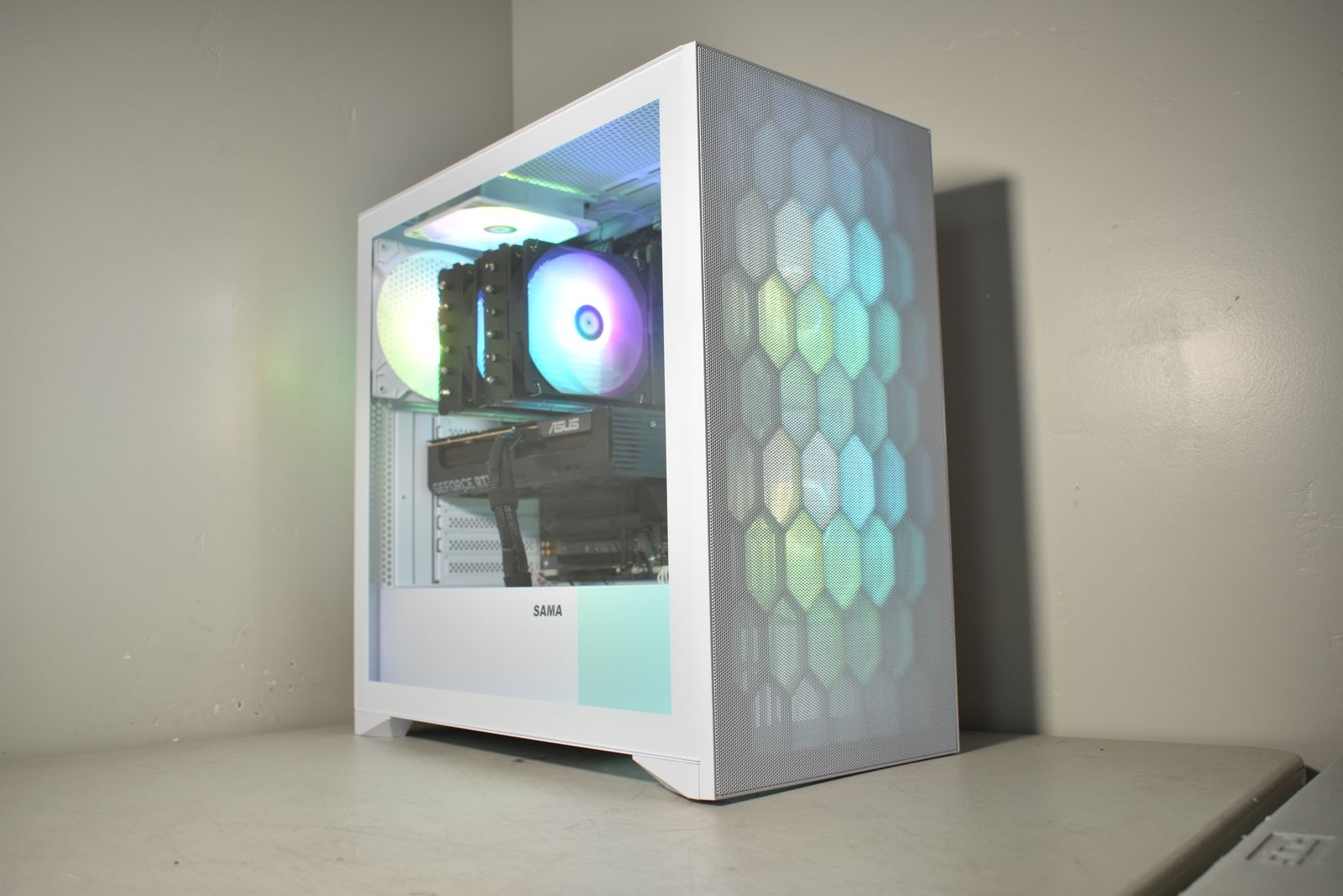 • Case: SAMA ARGB WHITE Tempered Glass Mid Tower