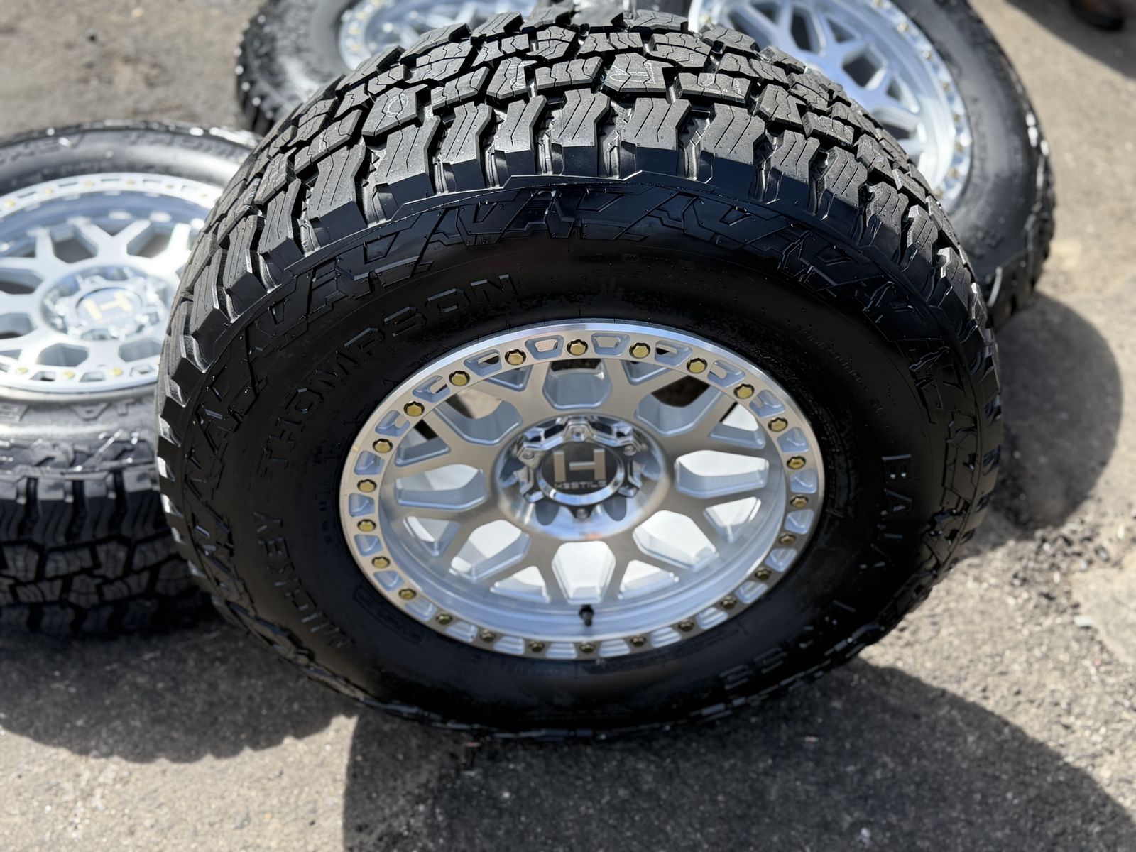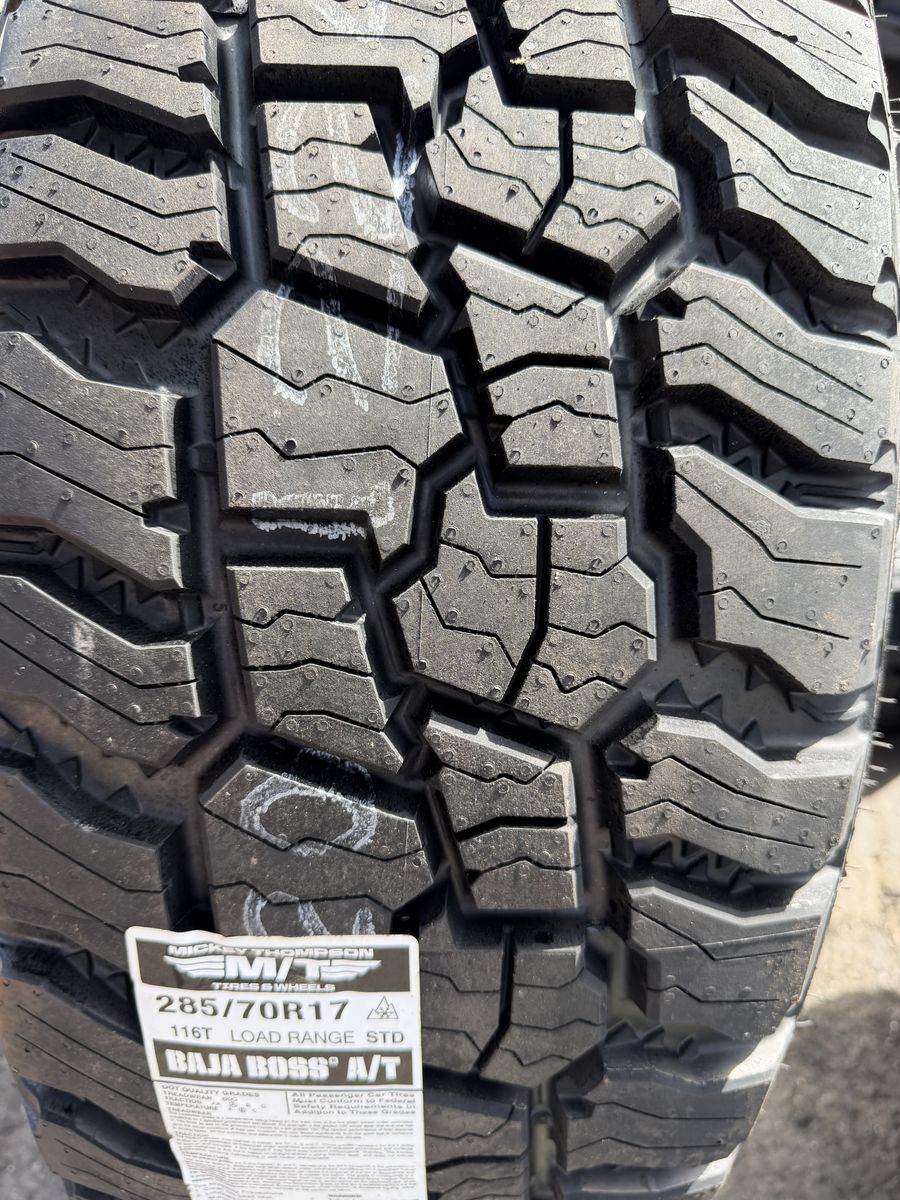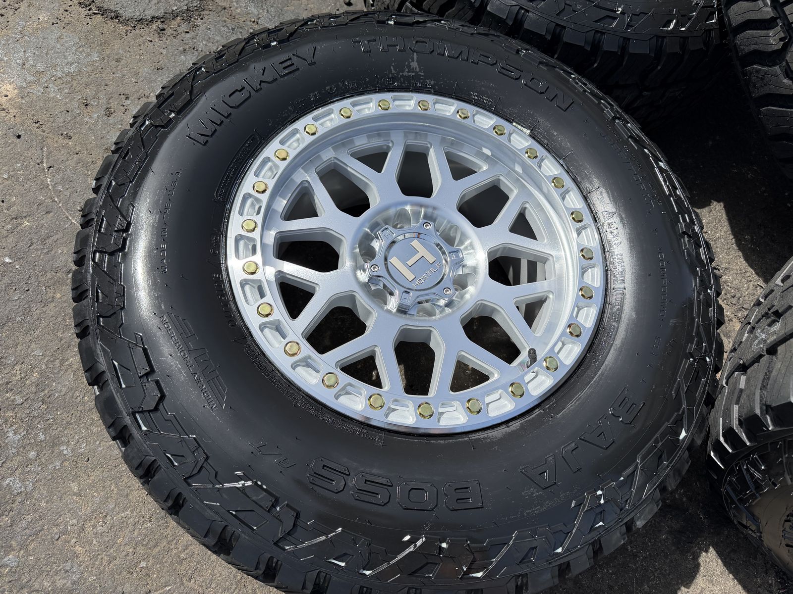 Brand new package! Brand new style for 2026 from Hostile this is the H601 Rapture 17x9 00et offset. Silver and machined finish. Mounted and balanced on a new set of Mickey Thompson Baja Boss AT tires 285/70r17. 6x135 bolt pattern. These fit 2004 and newer Ford F-150 and expedition. Huge savings! Priced to sell. Call or txt 801-876-0324