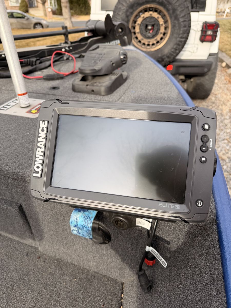 Lawrence elite 9TI with extended range sonar transmitter mounted to boat hull. Like new (1000$ package)