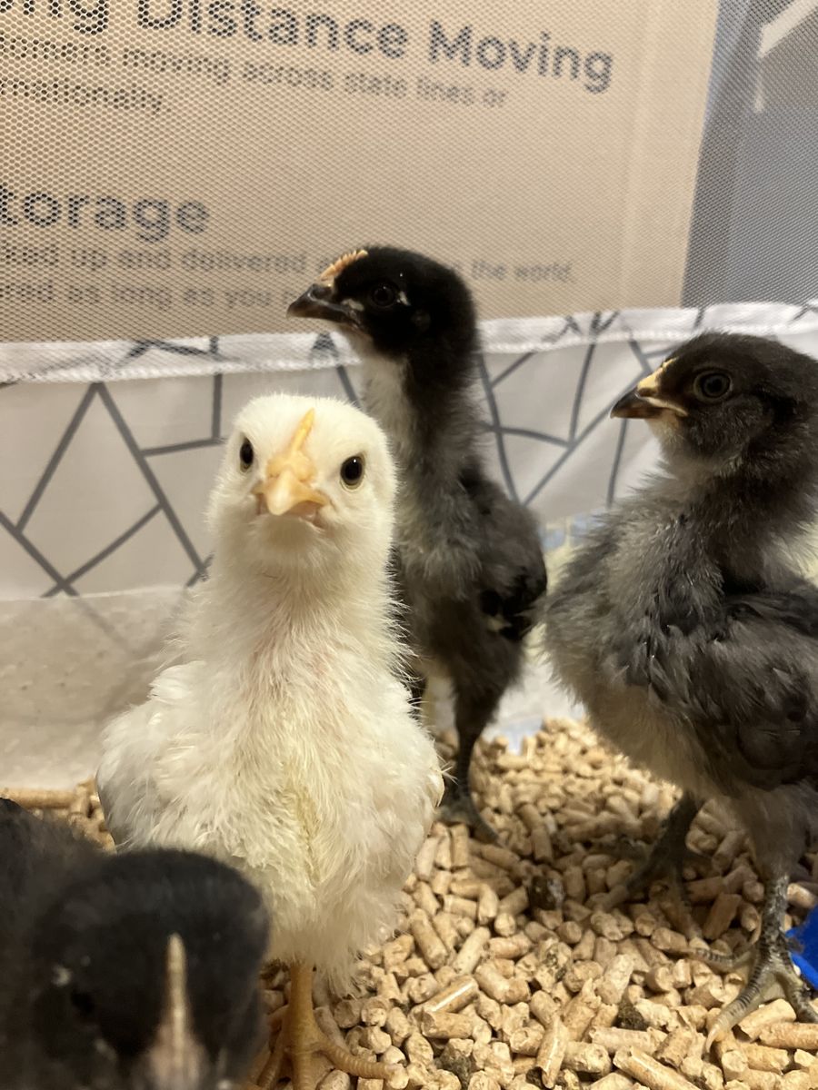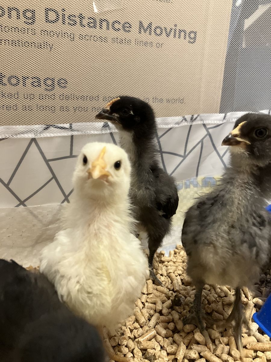 Straight run rainbow egg layer chicks! Hatched on March 11. Parents include 20+ possible breeds including purebreds and hybrids. Fathers come from brown and white eggs including Black Copper Marans. Moms lay blue, green, white, cream, and various shades of light to dark brown. These babies are sure to grow up to be beautiful and hens egg color will be a fun surprise! These birds are healthy, happy, and ready to go to a new home! They are straight run, there are probably boys in the mix. Please have a plan for what you will do if you cannot keep them. 7 available. Must go in sets of 3 or more. Cash only.