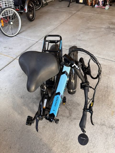 Bike folds for easy transportation. It has hydraulic assisted brakes and is in like new condition. It has a 45 mile to 60 mile reange depending on pedal assist mode.