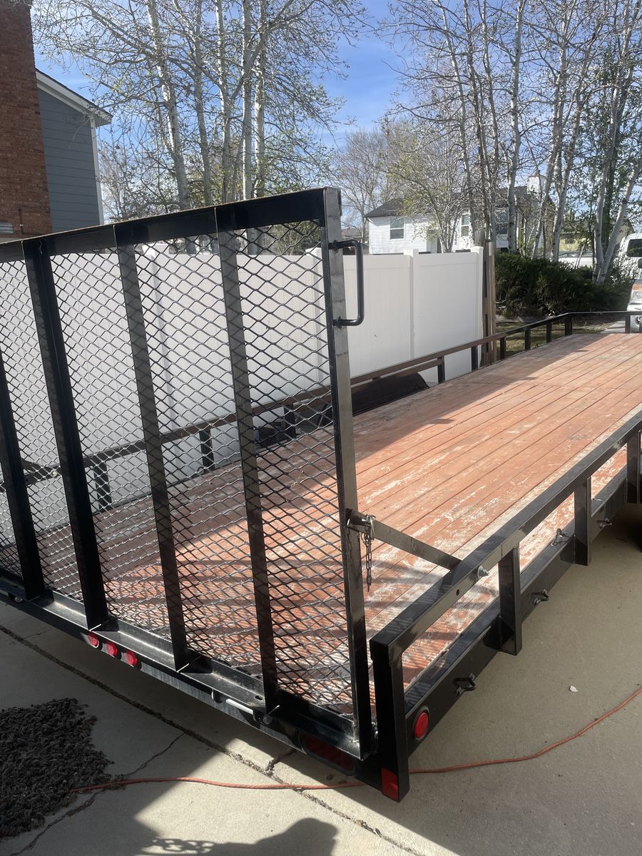 Venmo2023 Echo trailer flatbed. 26 ft deck with rear fold down gate. Total length of trailer is 29 ft. Great for hauling multiple side X side. Asking $5200 obo