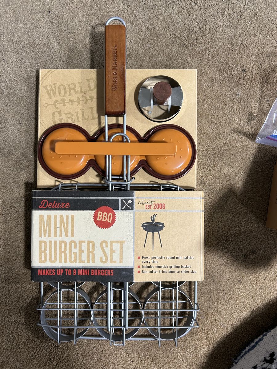 VenmoNew from World Market deluxe mini burger bbq set. Perfect for Father’s Day, summertime or this weekend. Makes up to 9 burgers at a time. Clean smoke free home. Cash or Venmo. Located and pick up from Alpine, Utah.