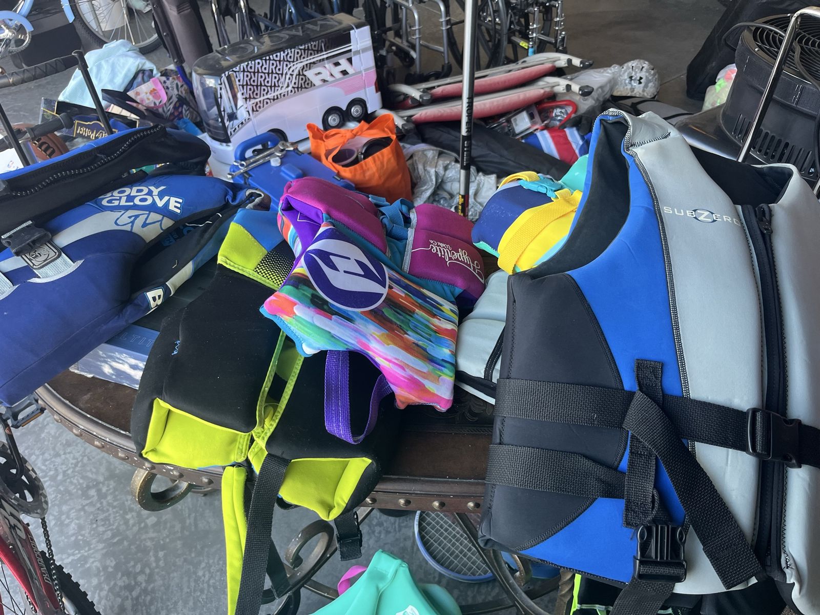 We’re clearing out a variety of items, including kids, bikes, kids, mountain bikes, adult mountain bike, golf, clubs, HomeGoods, books, and toys Snowboard, snowboard, boots, skis, ski boots kids and teens lifevests