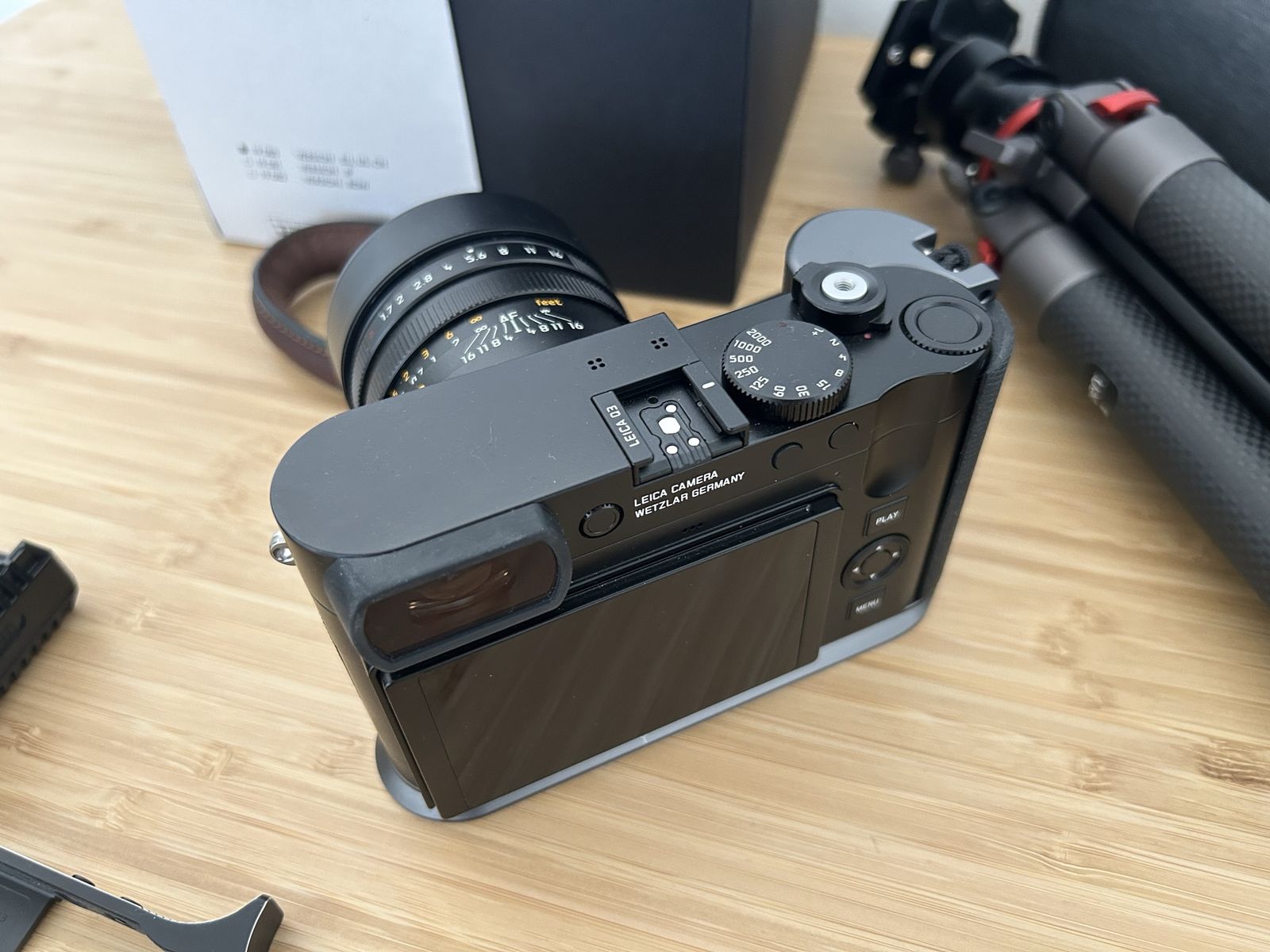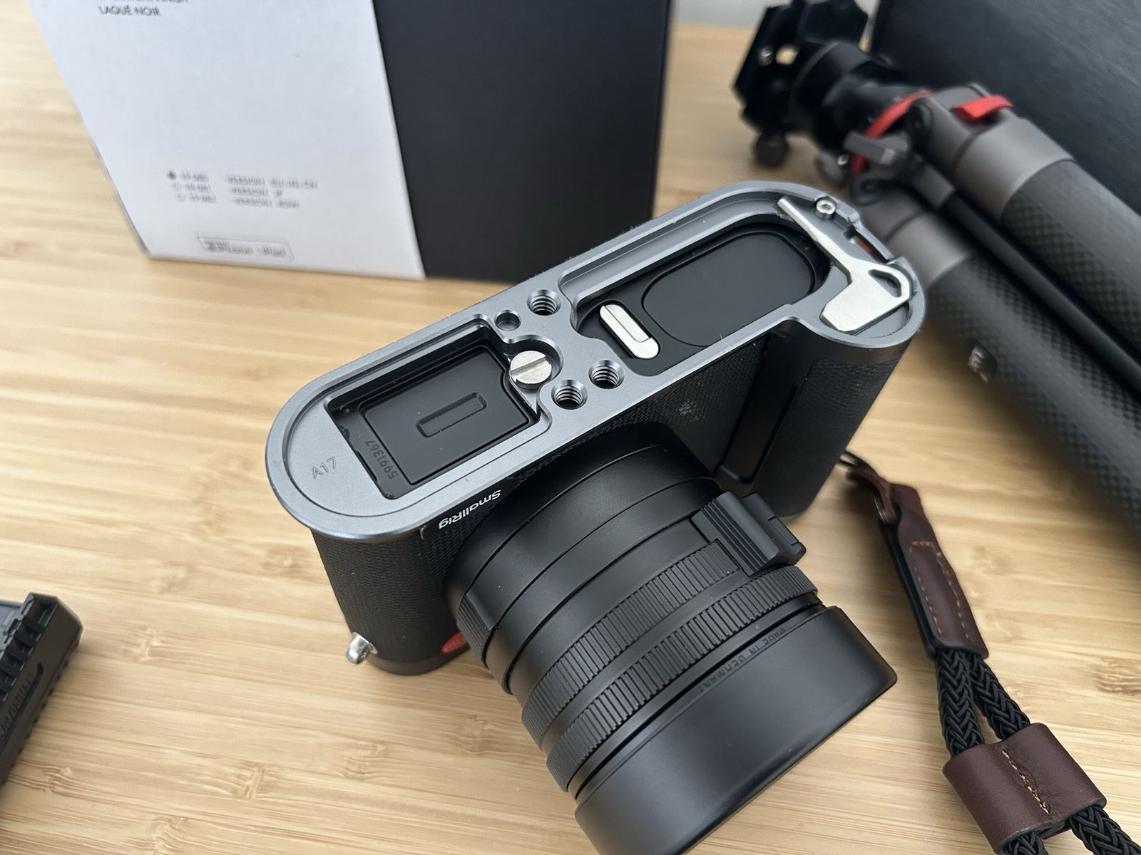 Prograde SD Reader Extra batteries (2) High end SD cards Carbon tripod Smallrig grip Hotshot cover Hotshoe thumb mount Q3 Charger Wrist strap Original box manuals etc.