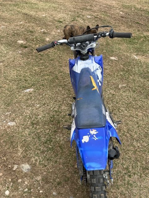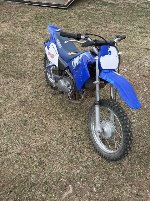 I believe it’s 2004 I will have to look at the title to confirm. Yamaha TTR 90 4 stroke. Great little bike has electric start fires right up and idles. Serviced regularly plastics are a little faded and it has a rip in the seat but motor is excellent shape. Kid is upgrading so he wants to put the money from this sale towards his new bike. I also have training wheels that bolt right on if interested. Title in hand. Feel free to reach out with any questions two 0 eight seven 0 nine two nine five three. Price is OBO.