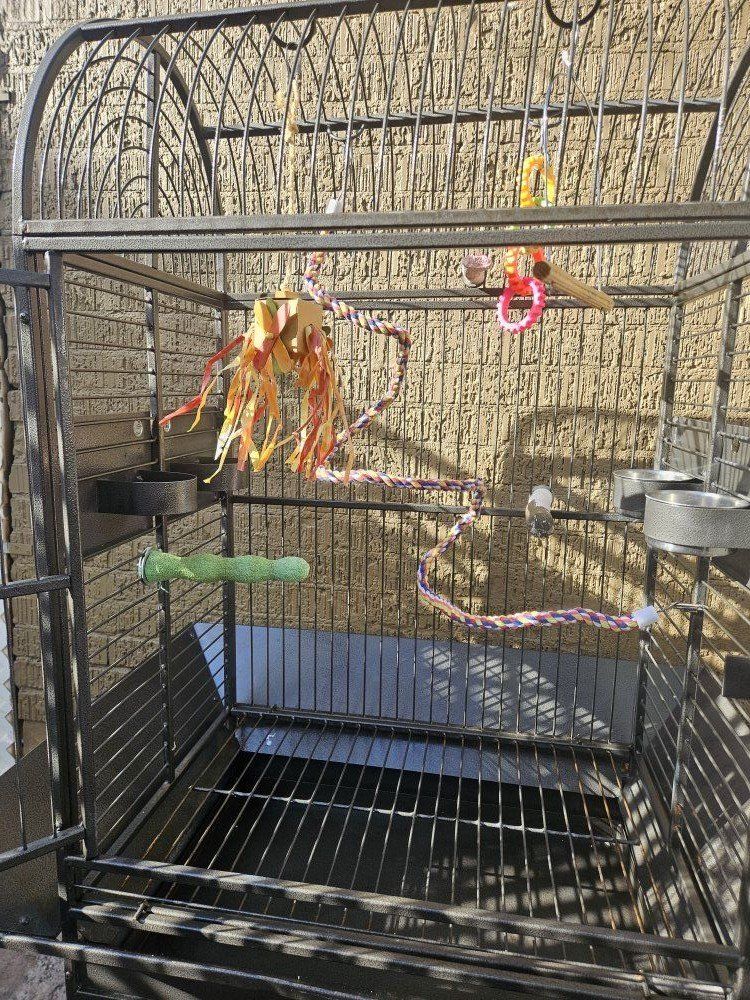 27"wide x 60"tall x 19"deep Nice large bird cage.
