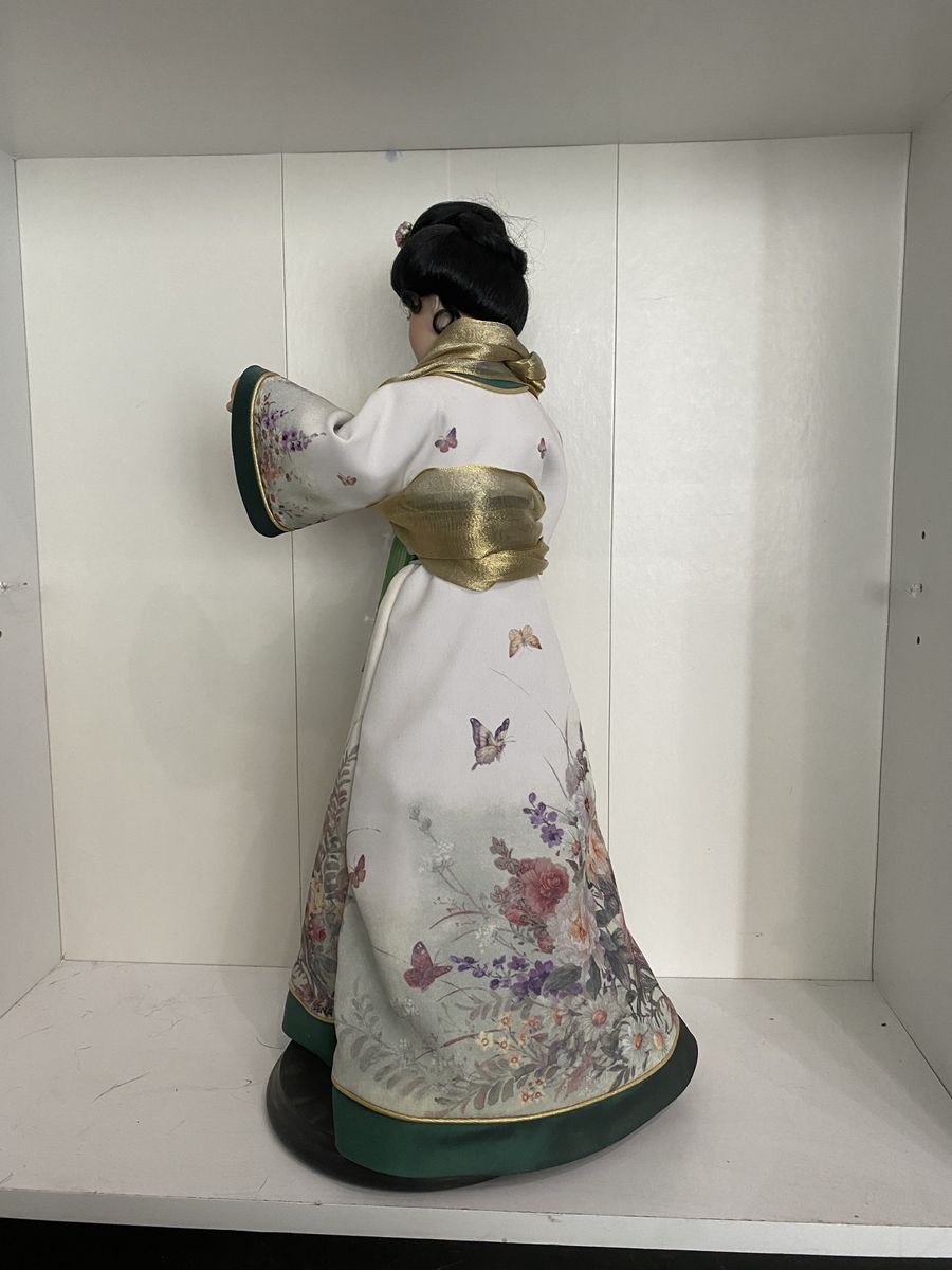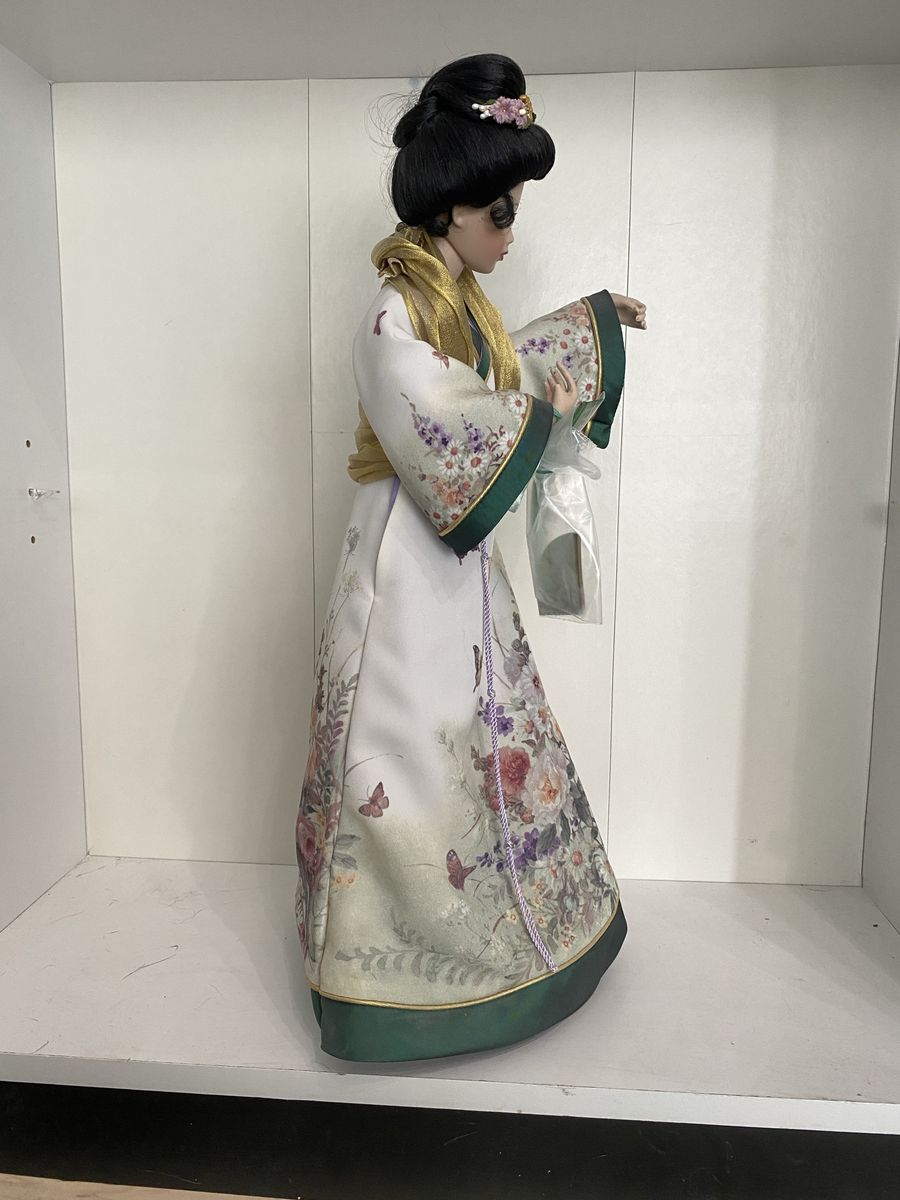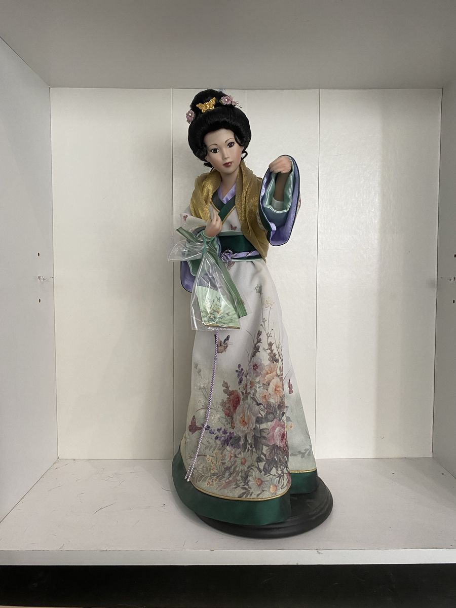 VenmoVintage Japanese geisha doll, made in Japan, dressed in a traditional kimono. This type of doll is often displayed in glass cases and makes a unique decorative piece or collector’s item.