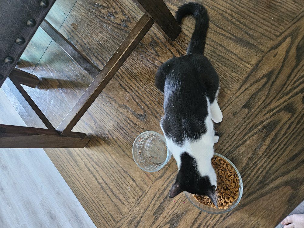 female black and white name is oreo she is 5 months old no vet checks or vaccinated and not spayed loves to cuddle and play loves being inside or outside uses dog door all the time very friendly just need her to good home
