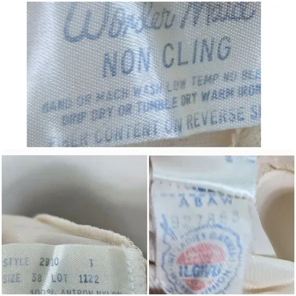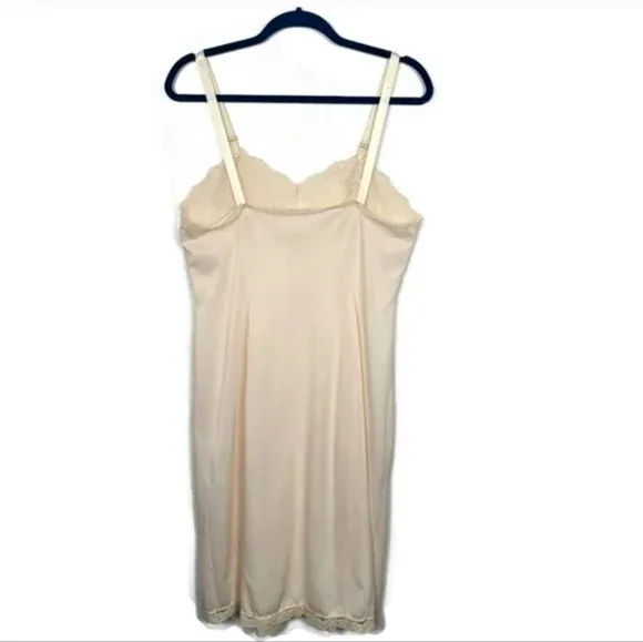 3 - Wonder Maid Non Cling Lace Full Slip Chemise Dress Cream Lace & Nylon Size 38 Excellent Used Condition 100% Antron Nylon - Machine Wash Lace bust and hem Adjustable straps Pit to pit 19" Waist 32" Hip 42" Length from top of bust to hem 38.5"