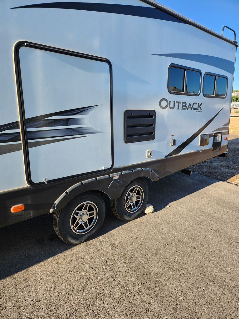 Keystone Outback 260 UML tongue pull trailer in excellent like new condition. Trailer has one large slide and includes 2 propane tanks and 2 batteries. It has only been used 3 times and has never been off road. Always stored under a specially built carport. Owned by an elderly couple. Includes everything you need to go camping today. All dishes, utensils, cooking equipment, coffee pot, leveling blocks, sewer hoses and chemicals are included. You will not find a cleaner or lightly used trailer at this price point.