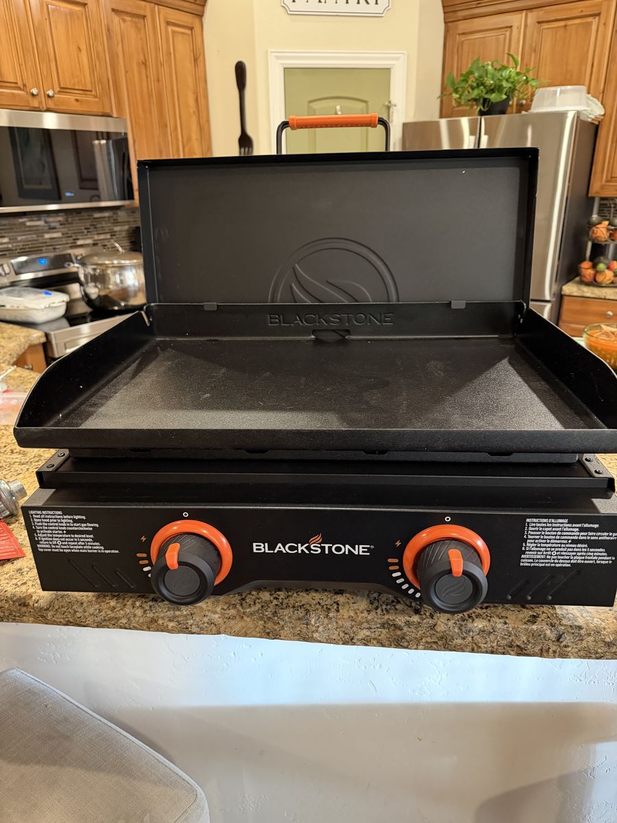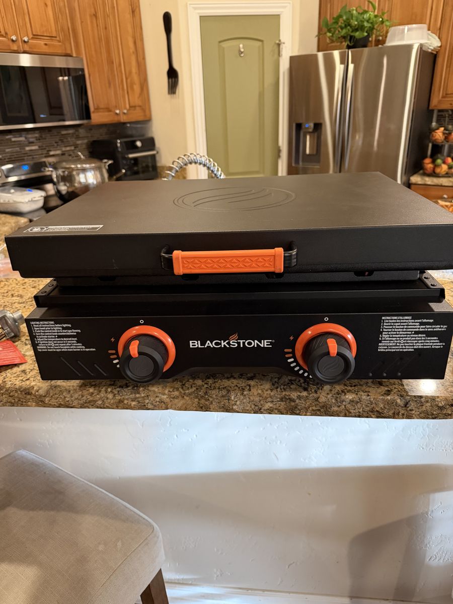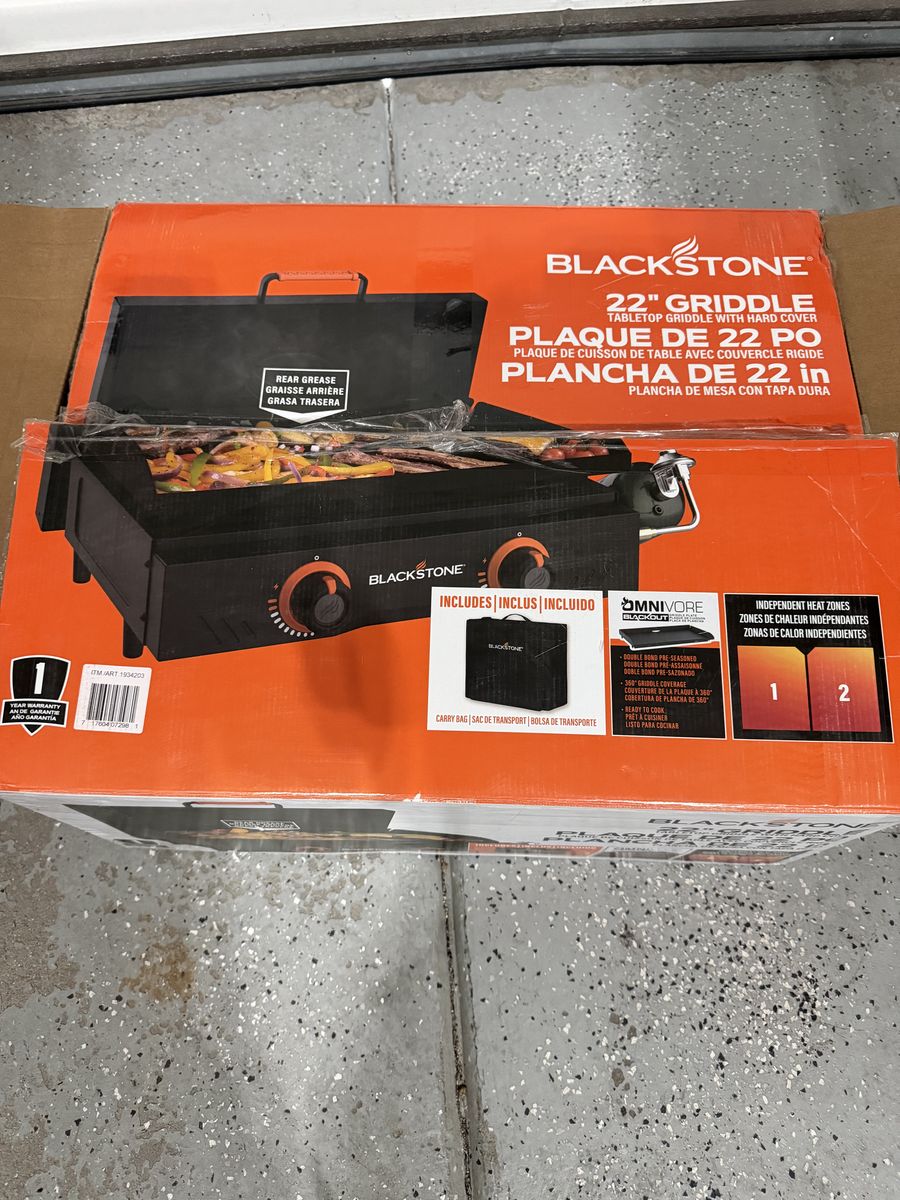 New Table top Griddle includes carry bag, pre- seasoned and two heat zones, please text with any questions, cash only