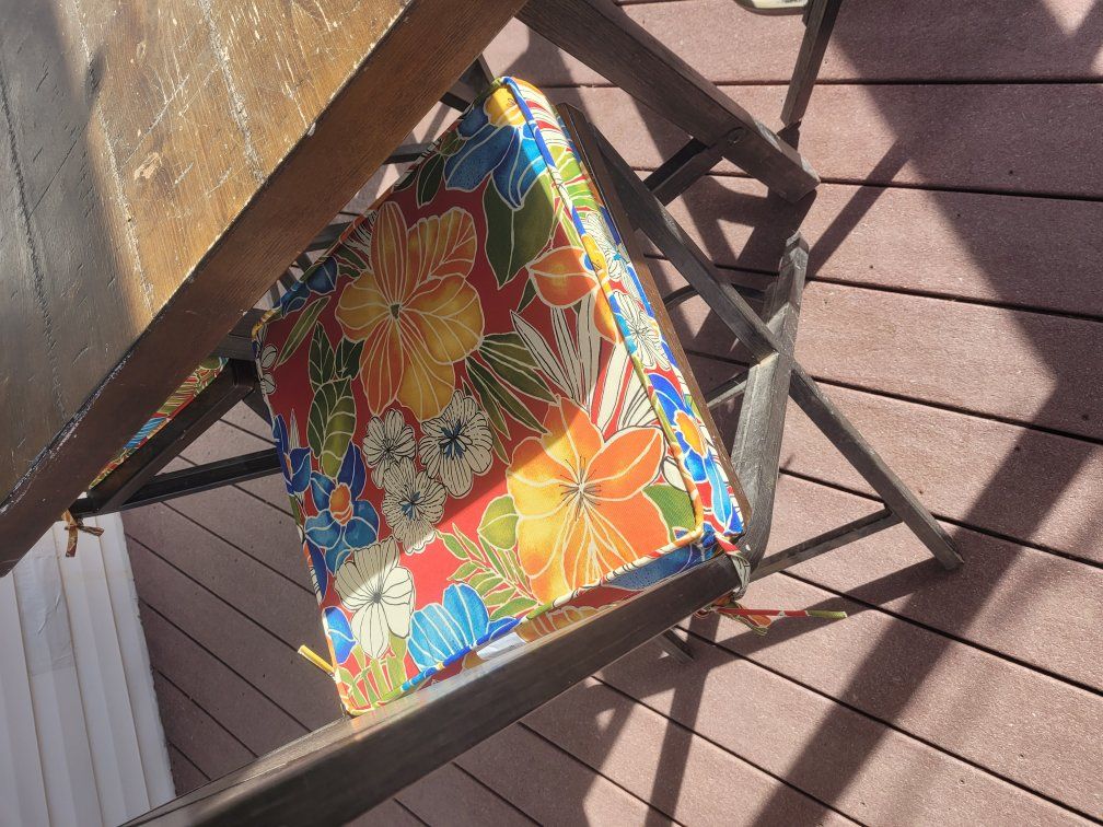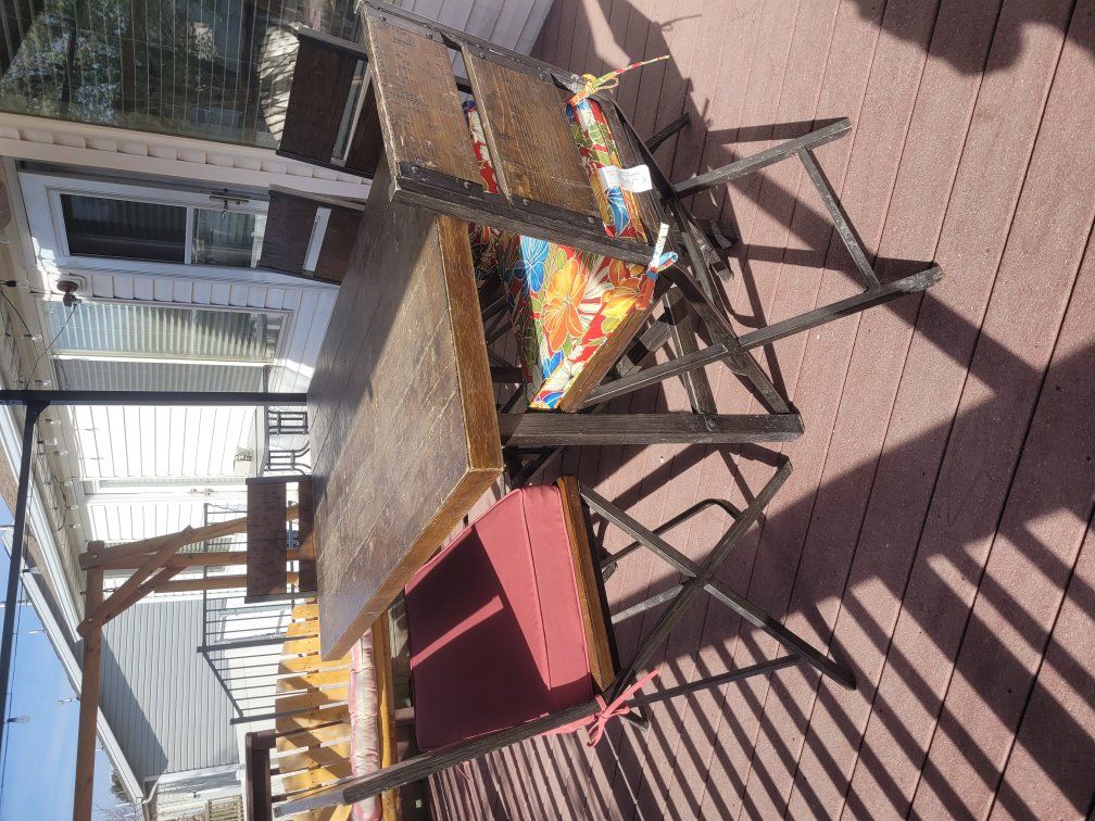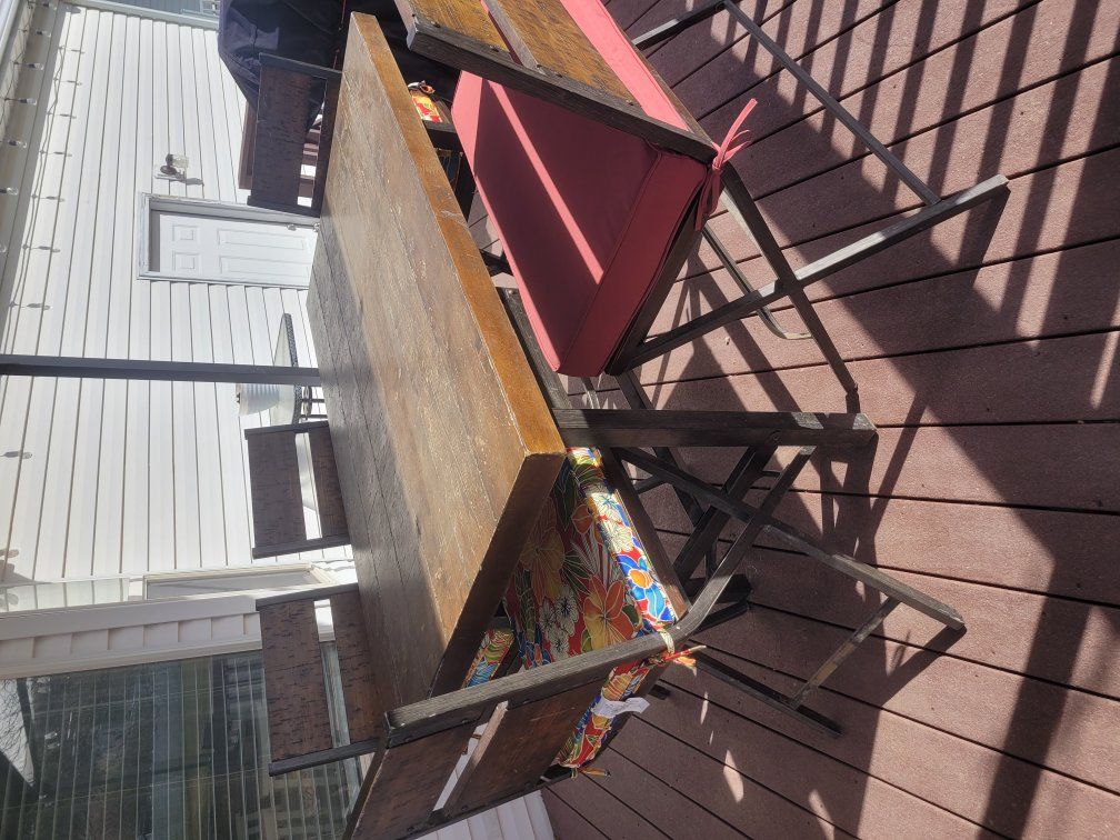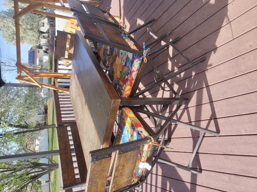 Venmo"Bar" height patio set for 6 people. This is a very heavy and sturdy set. Comes with new cushions. Porch pick up only, no trades. Located in Payson.