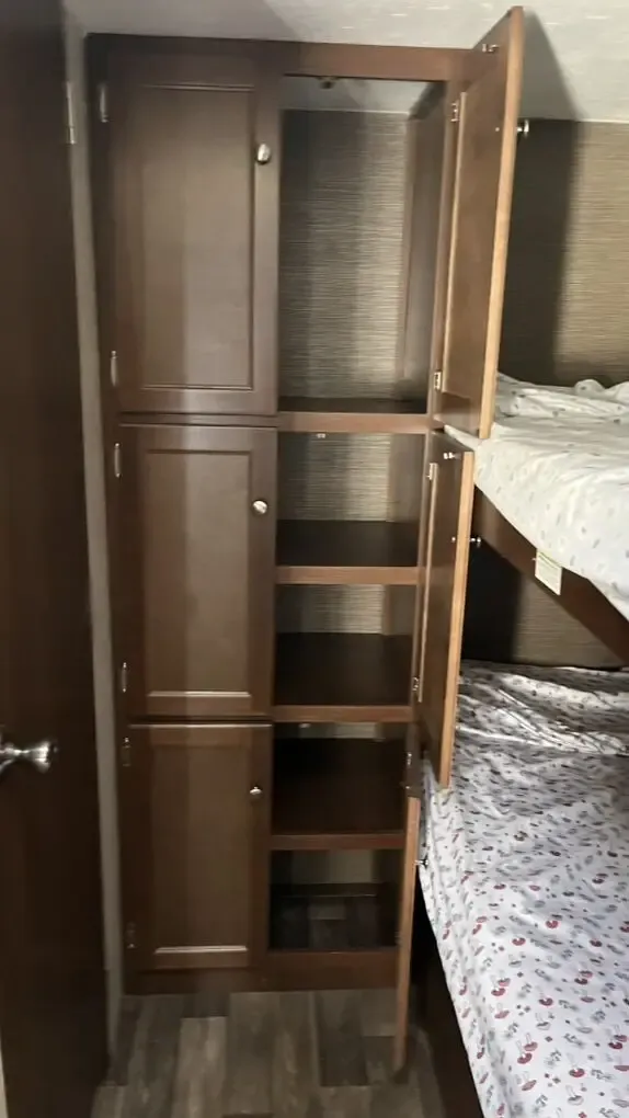 If you’re looking for a shorter bunk model that still sleeps up to seven people, this is the one. At just 23 feet, it’s easy to tow yet packed with everything your family needs. It features double axles, glass sides, a spacious horseshoe dinette, and a roomy bathroom—all in a compact, efficient floorplan.