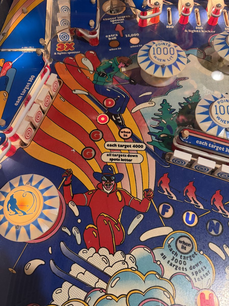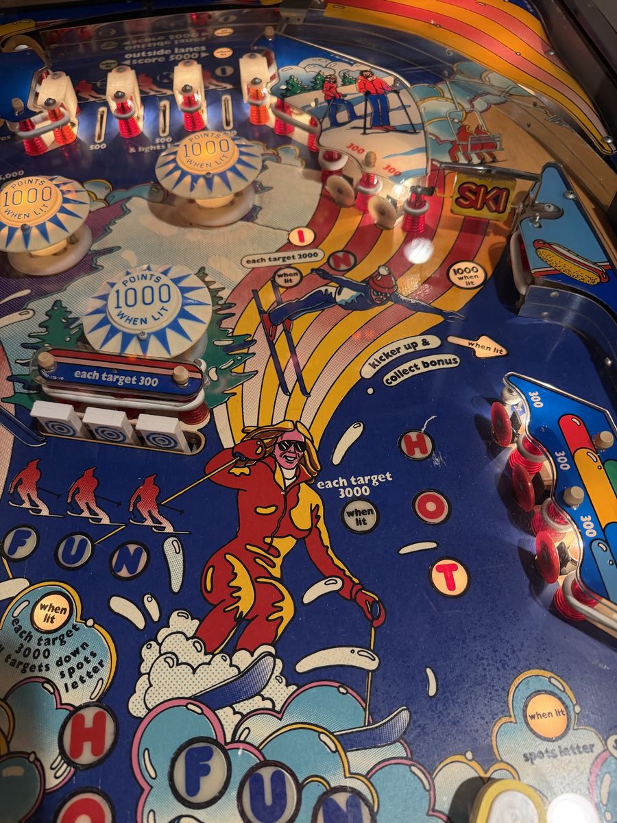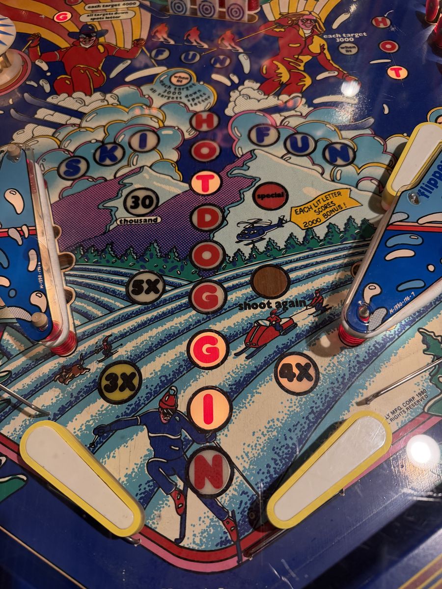 ZelleThis Bally Hotdoggin' Pinball will be the hit of your ski cabin, vacation rental, and gameroom. Works flawlessly with new MPU, driver, and audio boards. Was refreshed with new playfield, connections, and solenoids.