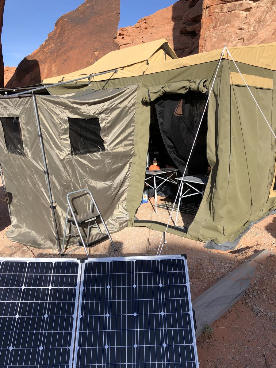 This expandable camper sleeps 4 and has an expandable outside room with a shower, fridge, freezer, sink and stove and is only 17' long. It is in great condition and ready for any adventure.
