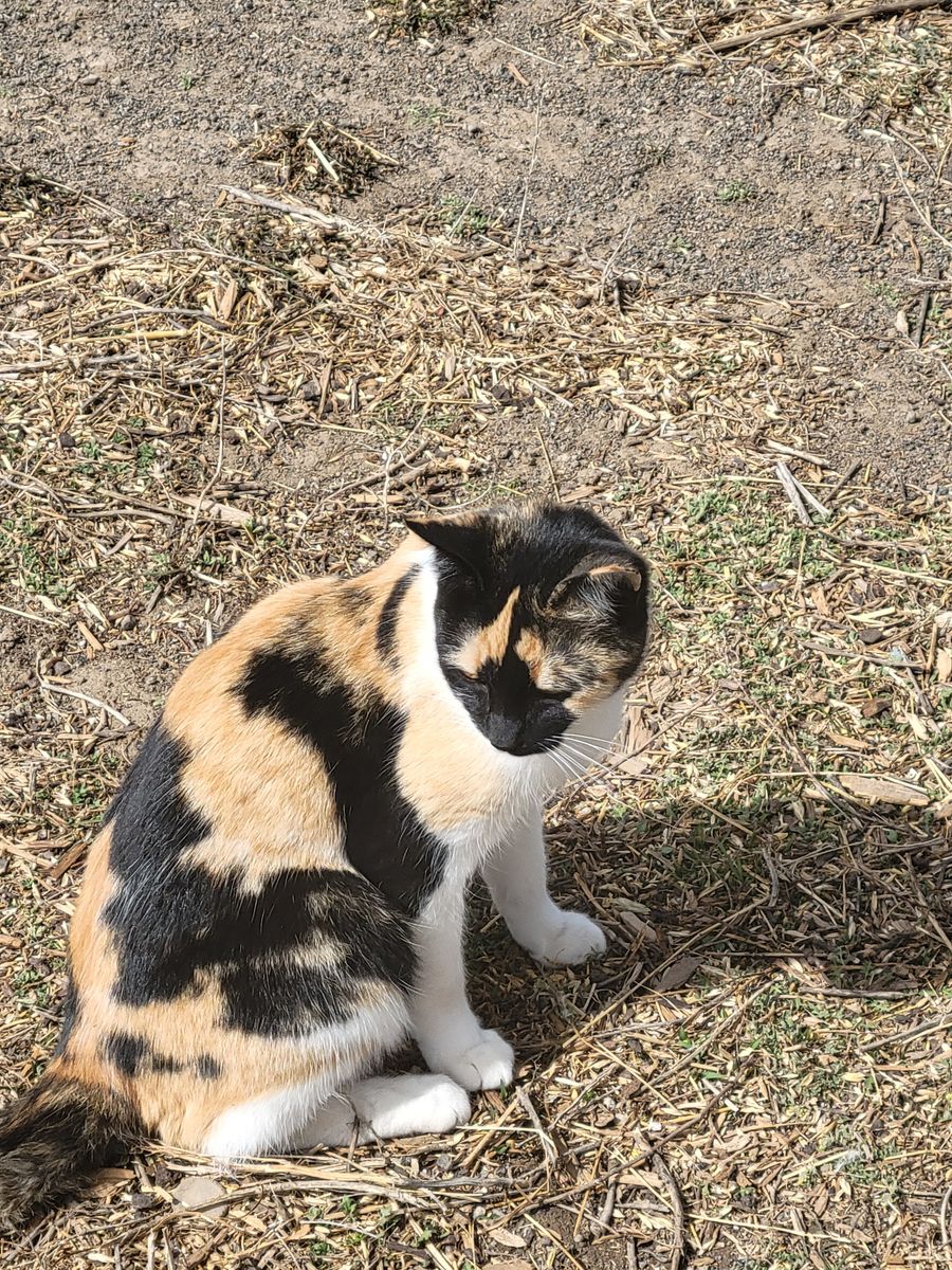 She was born last July to our female mouser cat. She is beautiful and friendly. She stays in the garage at night and is out all day. My kids pet her when shes in the garage but when shes outside she doesnt usually want to be picked up. She would probably get more used to being pet if she was held more often. She is a good mouser and would be great for a farm. She is 9 months old and not spayed. We are moving and can't take her with us.