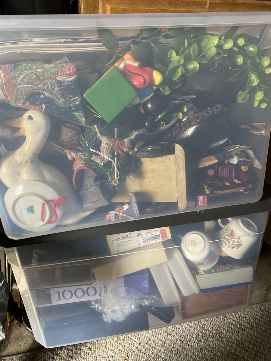 There will be clothes, jewelry, tools, furniture, toys, books, dvds, glass stuff, games, knick knacks, sports and hunting stuff, ect