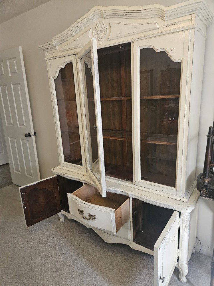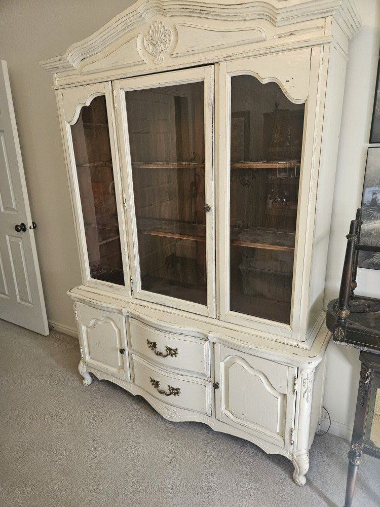Large china cabinet. Separates into 2 pieces for easier moving. 6' x 5' x 18". Truck or trailer recommended, its heavy. FREE! call or text Marleen 801-867-0954