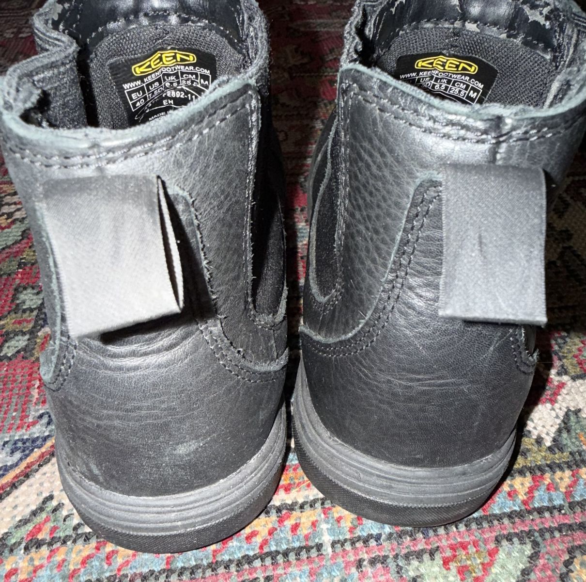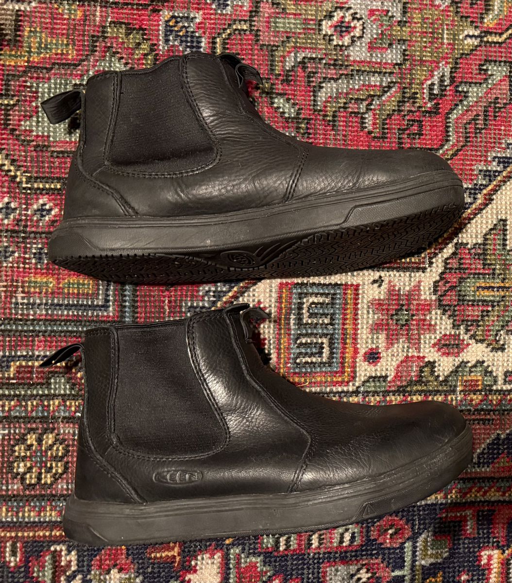 VenmoPair of used Keen black leather Chelsea boots with nonslip soles and elasticated gussets to pull on and off.