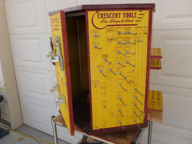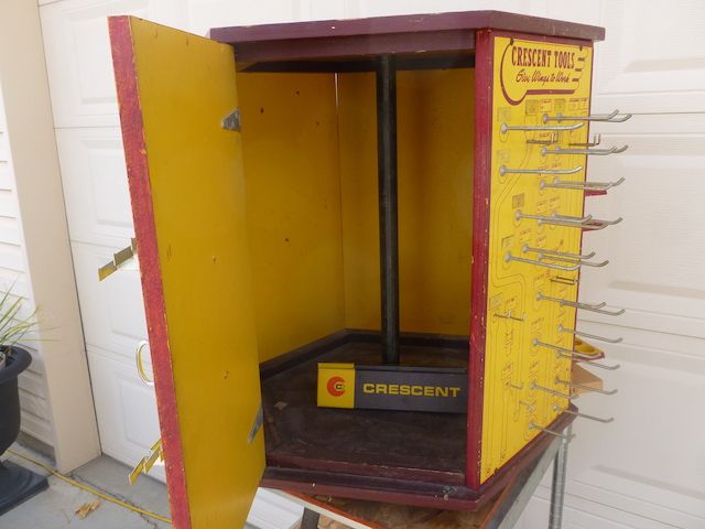 VenmoThis is a great piece for your man cave, shop or a garage. This is a complete cabinet with the door that opens to store extra tools inside. You can find the single panels, but I have never seen another complete cabinet. The tools hanging on it go with it. This is a one of a kind find. This is 28 tall and 24 across. This swivels around very smoothly. This is a must see piece. Thanks for looking. No trades. Serious inquiries only please. Price is Firm.