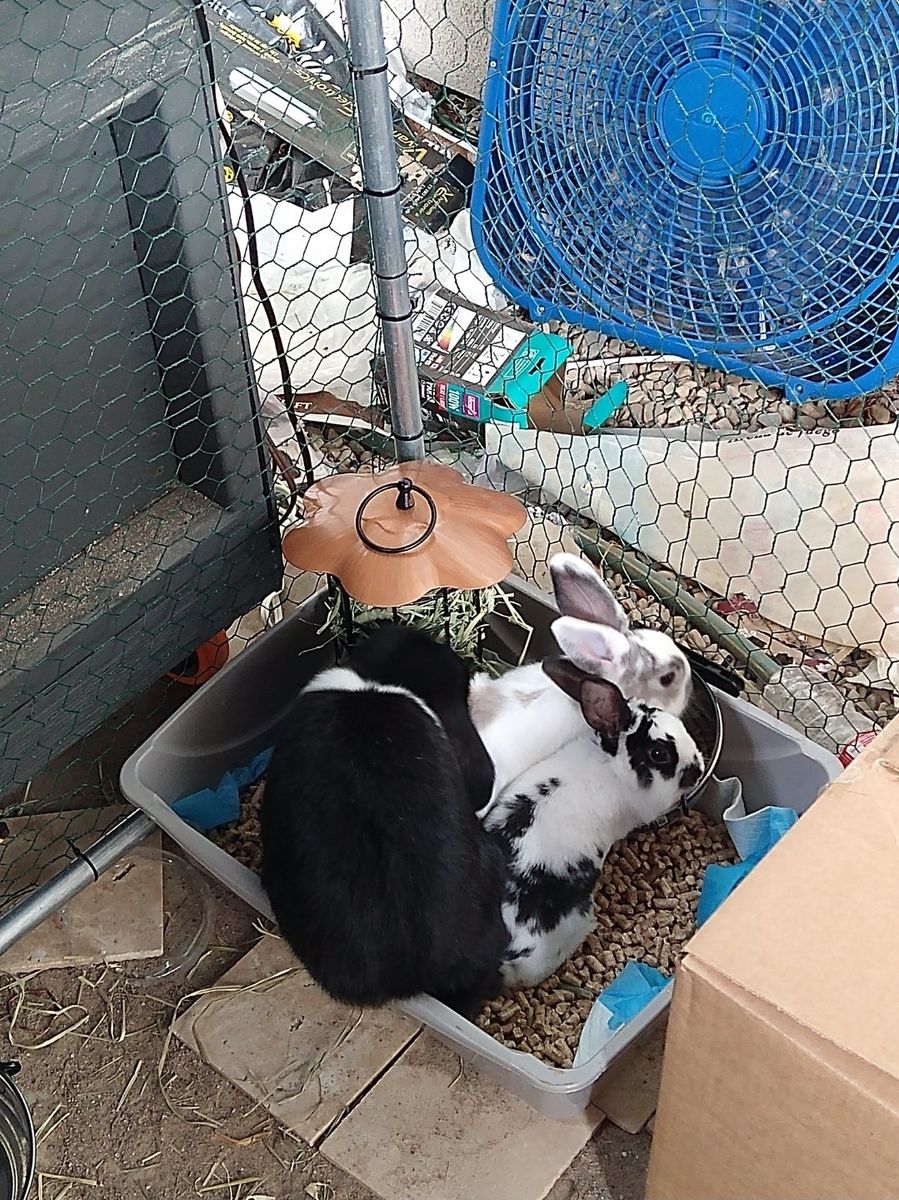 VenmoWe have 2 bunnies available. The white and brown/grey one is Benny and the black and white one is Ronnie. Both will be pretty timid and skittish at first but with some patience, they will be loving companions! Both are unneutered males about 3 years old. Let us know if you have any questions!