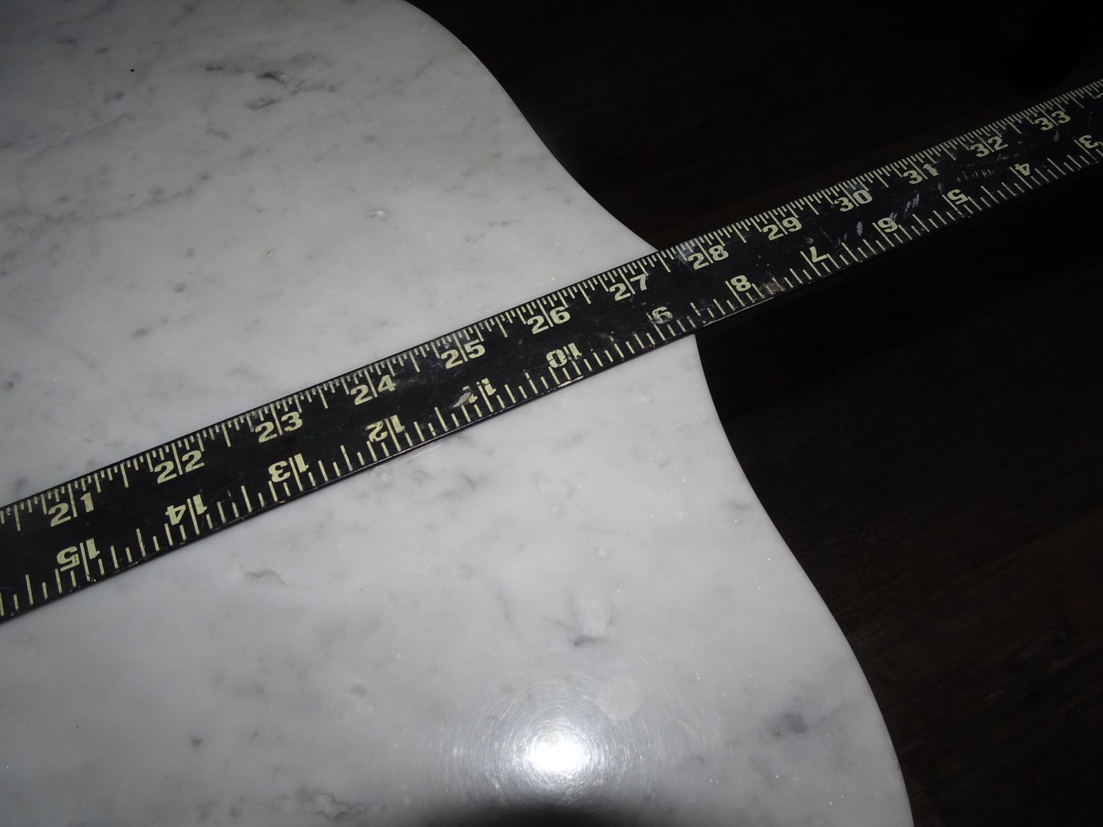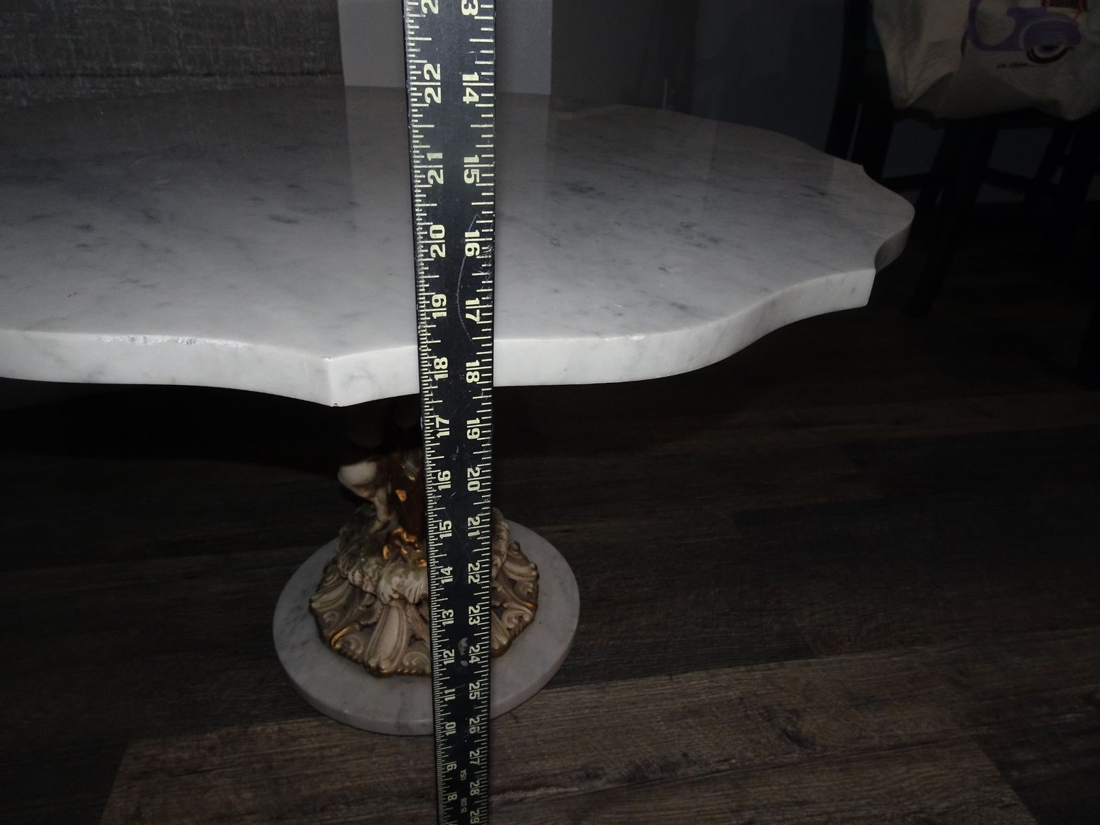 No longer fits decor. Table top 27.5 inches wide and 18 1/2 inches tall.