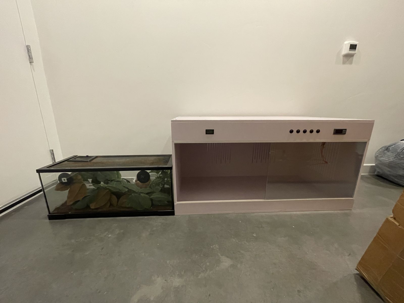 ApplePayLarge PVC enclosures for sale! I have 2 left 483018 roughly 110 gallons, great for tortoises or other ground dwelling species. Each enclosure has 5 light sockets and a thermostat to control the heat. The thermostat automatically shuts off the lights when the enclosure reaches a desired temperature.