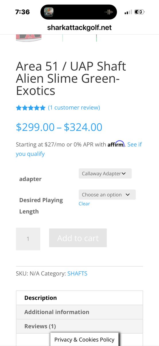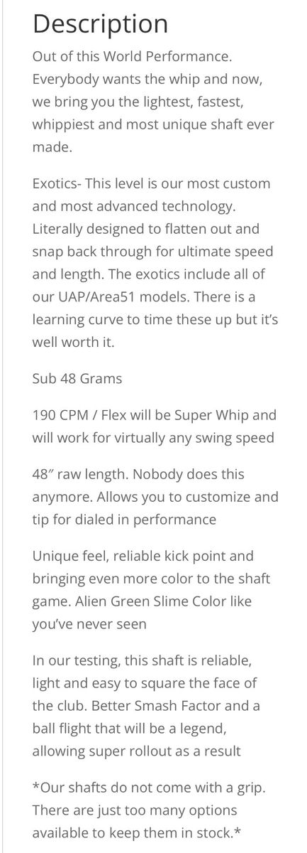 VenmoShark Attack Area 51 / UAP Shaft Alien Slime Green-Exotics 44-1/2 “ With A Callaway Adapter Cash Preferred Will Accept Venmo Pick Up In Roy
