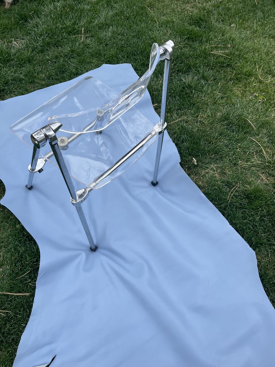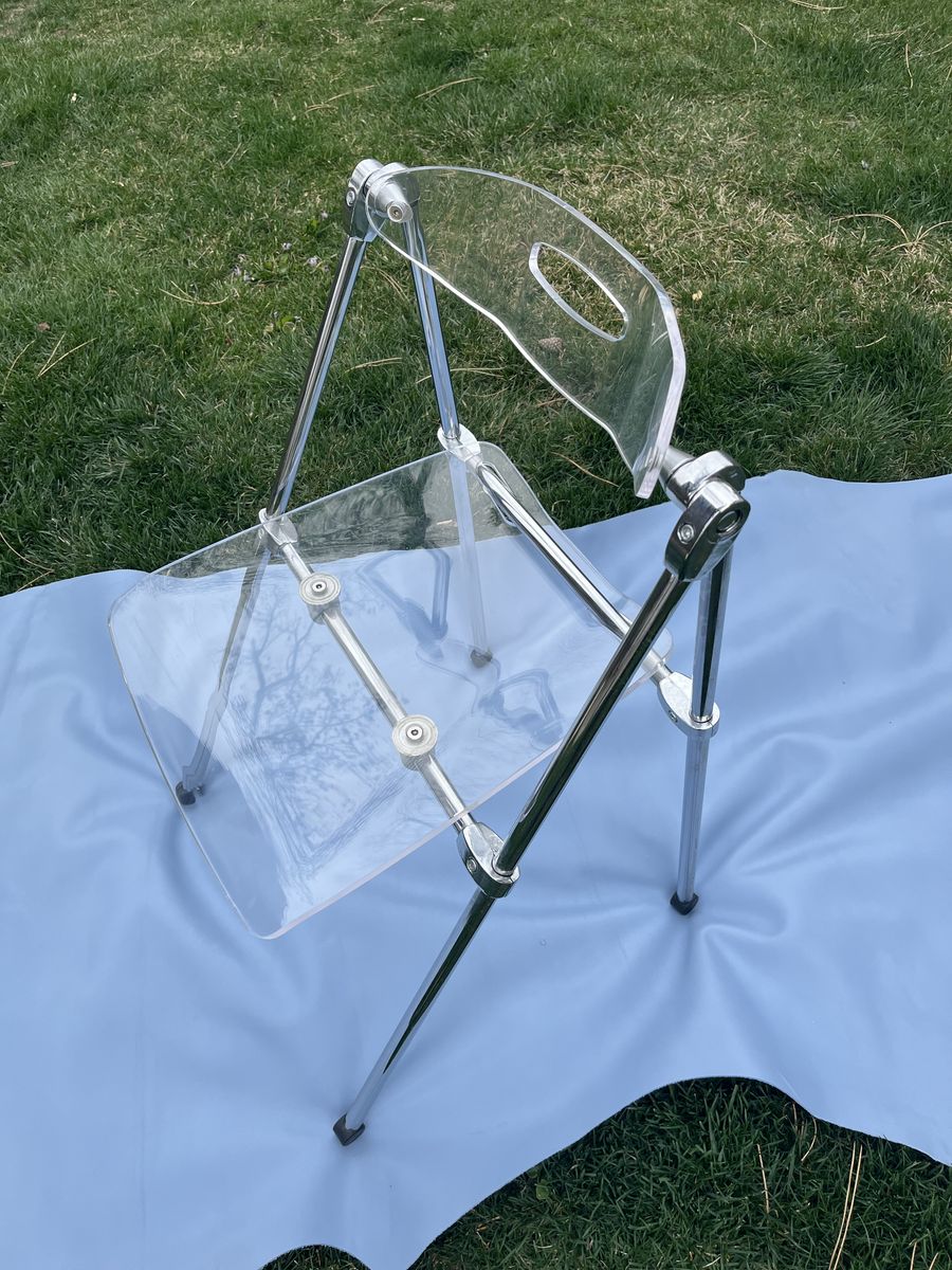 This acrylic folding chair with chrome base
