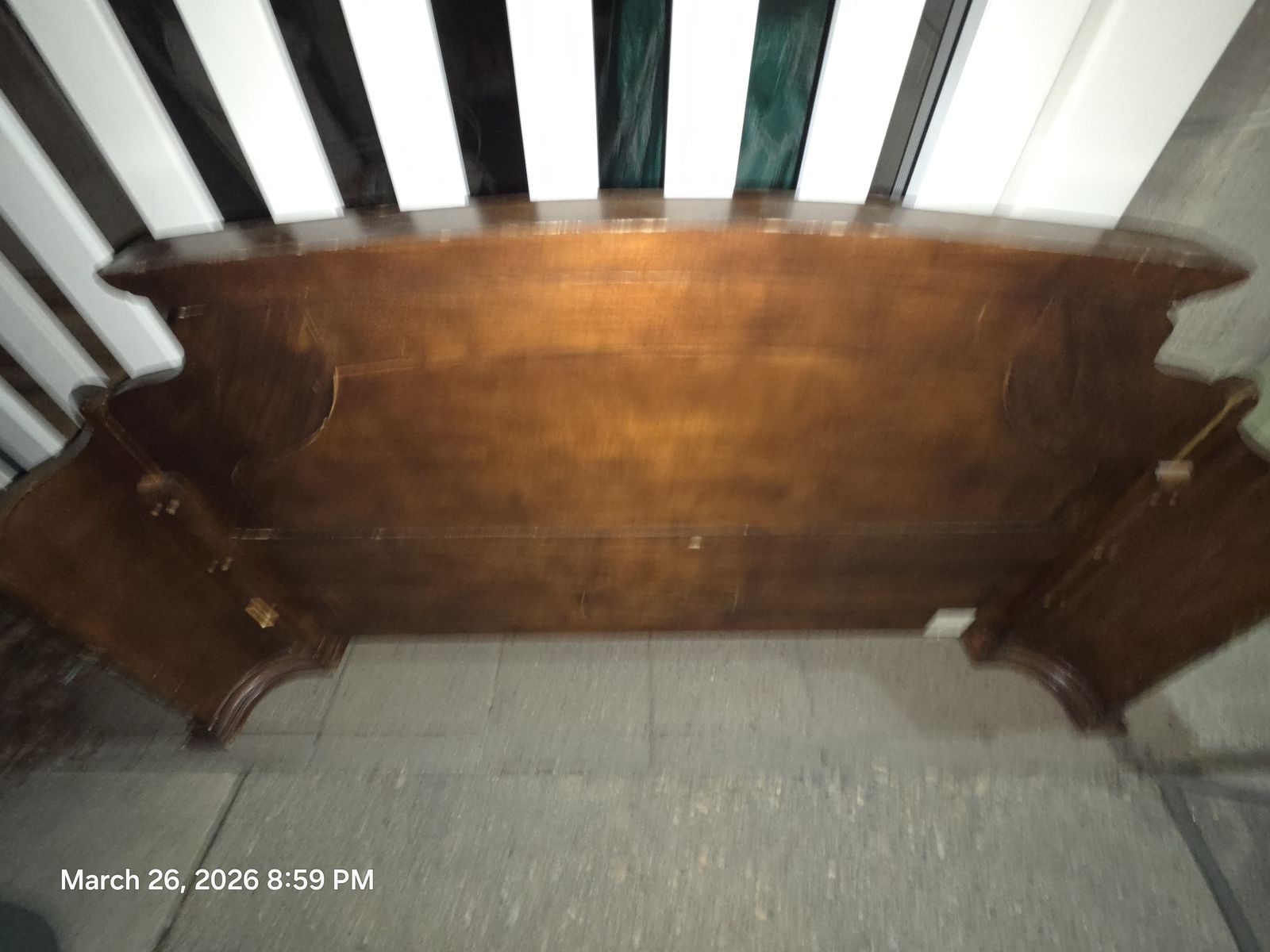Solid wood construction with detailed carving. Extremely heavy and high quality.