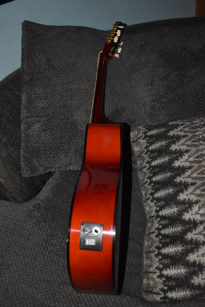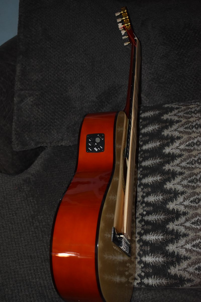 Full size, new, beautiful electric acoustic guitar. Comes with a built in, battery operated tuner. I have several Guitars colors, let me know which one you would like.