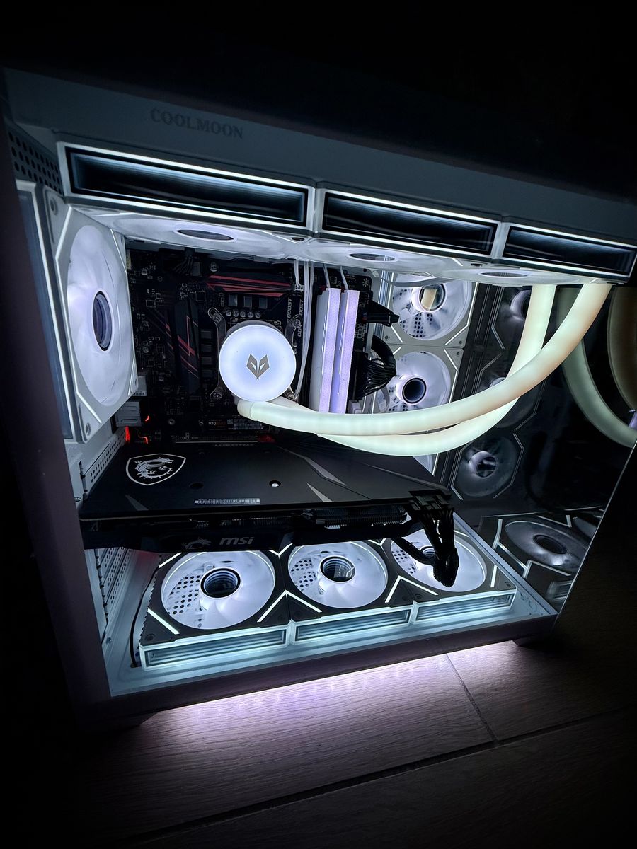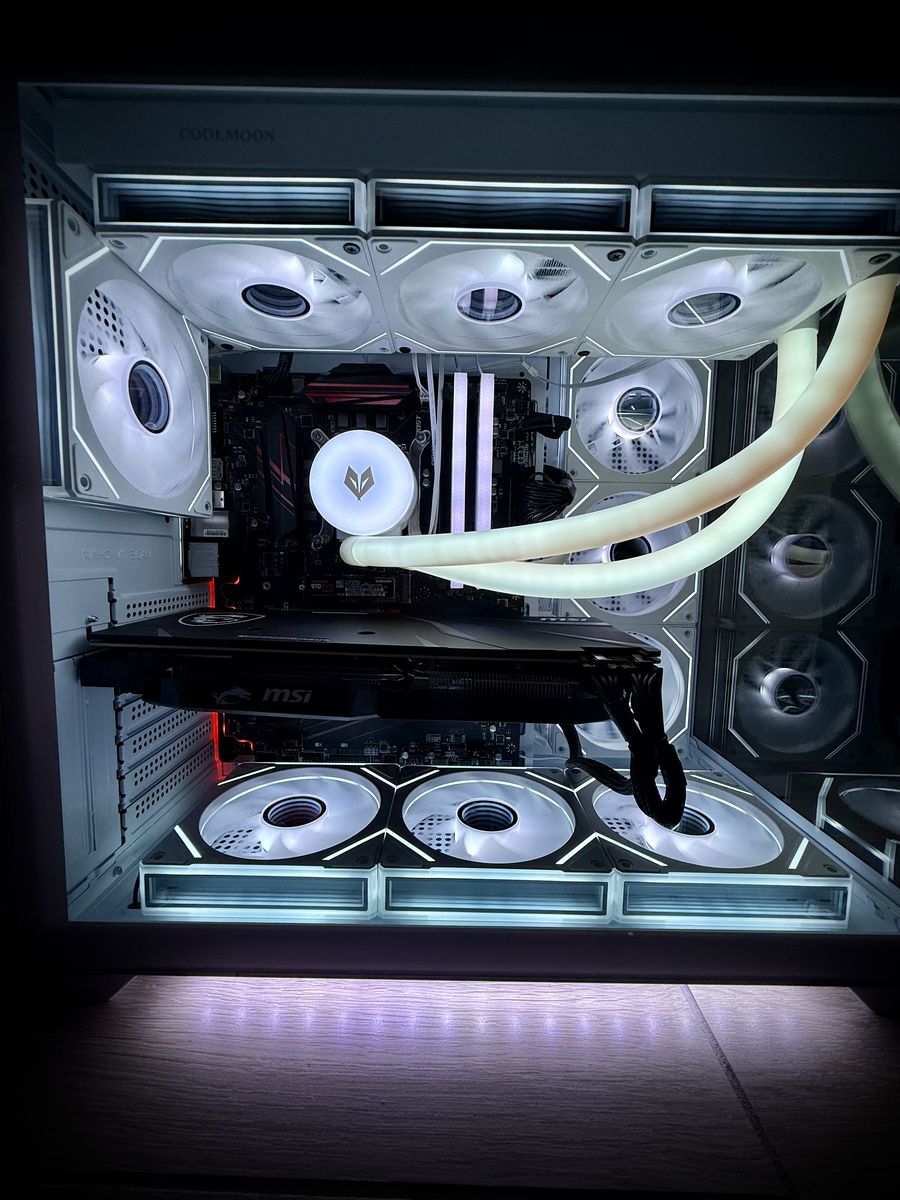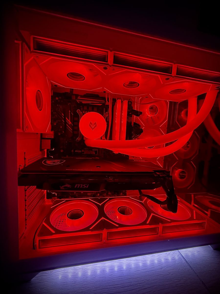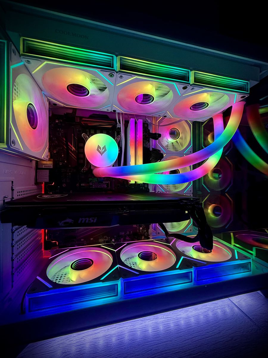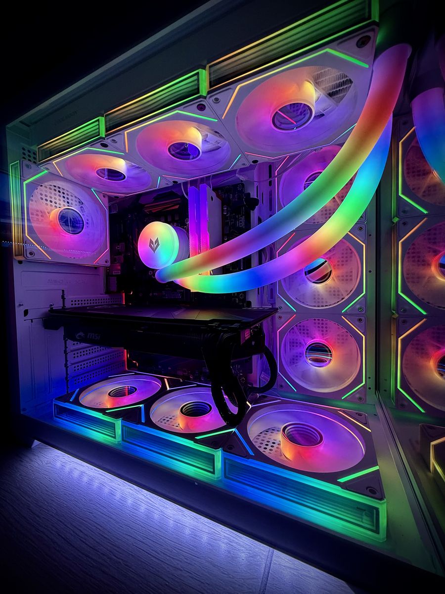 ∙ Intel Core i7 processor 6 Cores / 12 Threads | 3.2 GHz base, boost up to 4.6 GHz ∙ Graphics Card — MSI Radeon RX 5600 XT 6GB Overclock Edition ∙ Motherboard — MSI Intel motherboard | Tuned for stability with latest Bios Updated ∙ Thermal Paste — Noctua Premium Thermal Paste | Industry-trusted compound for optimal CPU temps ∙ CPU Cooling — 360mm RGB AIO Liquid Cooler | Addressable RGB tubes for a stunning, show-stopping look inside your case ∙ Storage — 500GB NVMe M.2 SSD + 1TB Western Digital Blue HDD = 1,500GB total | Lightning-fast boot and load times with massive game library storage ∙ RAM — 16GB DDR4 RGB | Smooth multitasking with eye-catching illumination ∙ Case — White Panoramic Tempered Glass Gaming Case | Modern, clean aesthetic with full 270° visibility into your build ∙ Case Lighting — LED Underglow | Ambient lighting that makes this build pop from every angle ∙ Fans — 10x 120mm RGB Infinity Mirror Fans | The infinity effect creates a mesmerizing depth illusion that has to be seen in person ∙ Power Supply — 700W PSU | Plenty of headroom for stable, reliable power delivery ∙ RGB Ecosystem — All RGB fully synchronized and controllable — swap colors, effects, and modes at will | Fan speeds managed directly through the motherboard ∙ Software — All drivers, updates, and Windows 11 Pro pre-installed | Plug it in and play — zero setup required