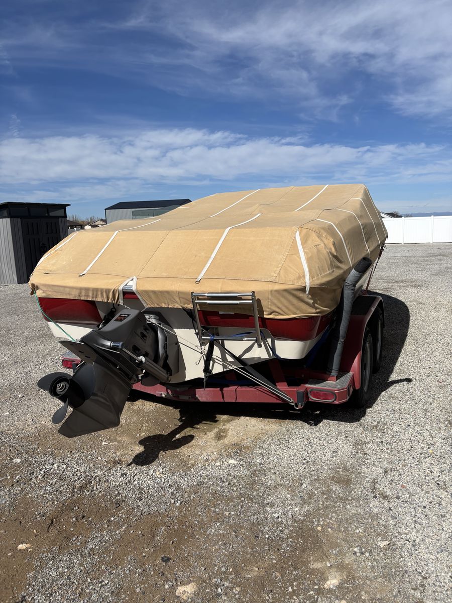 Great boat fuel injected new water pump, belts, oil, filters, new prop and lower unit oil. Bot runs great we just don’t use it enough. Dual battery tender cover and two tops. Nice trailer and newer tires $15,000.00 OBO titles in hand. Boat is in Filer Idaho