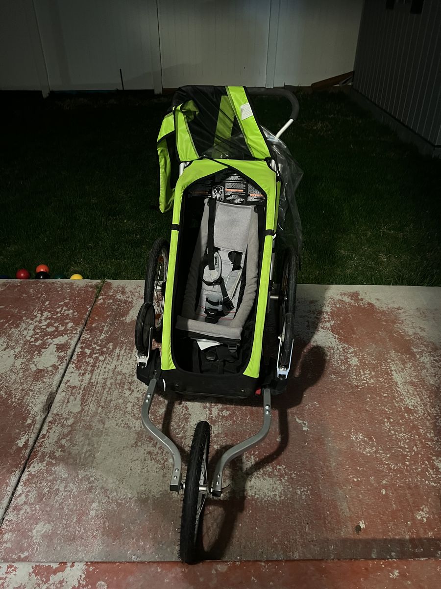 VenmoIt’s a single jogger, a few of the tubes may need to be patched or replaced in the tires, but besides that everything else is in perfect condition.