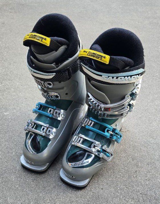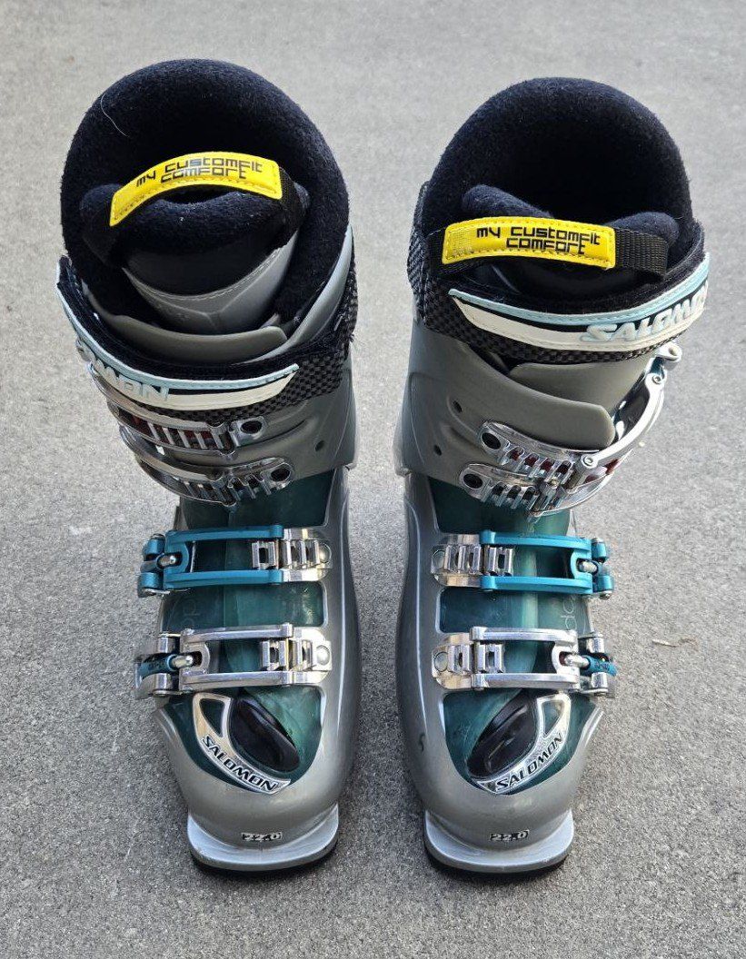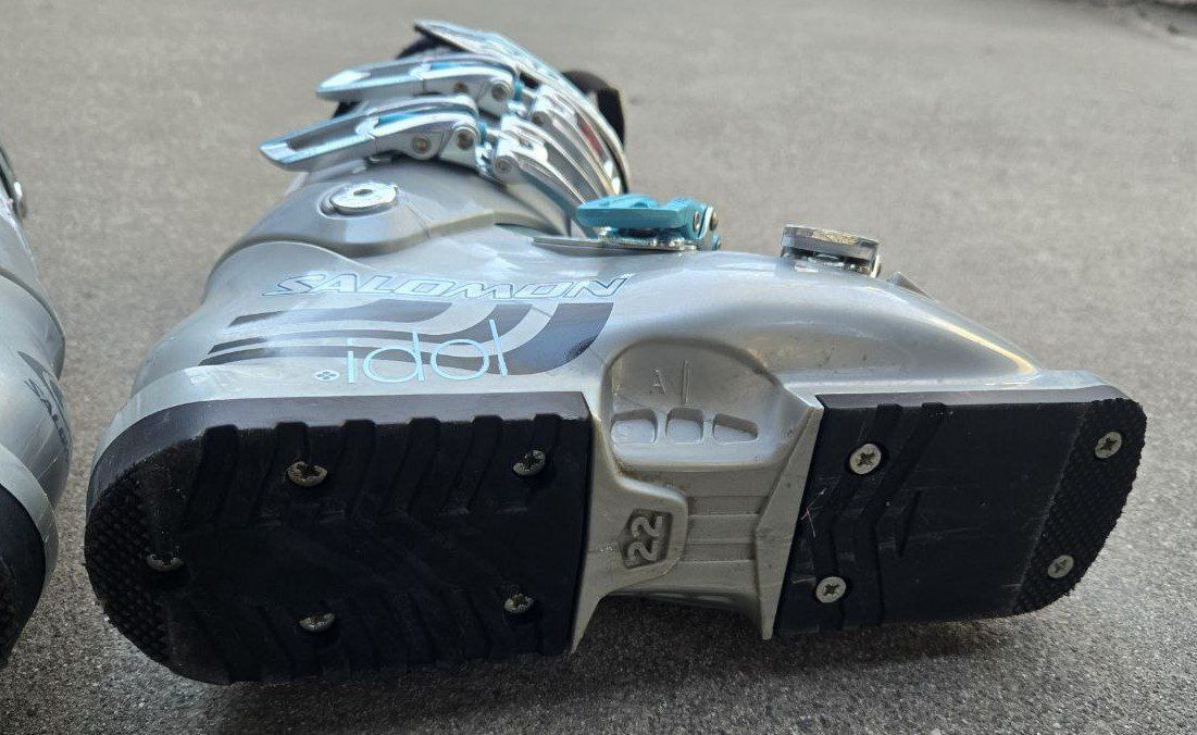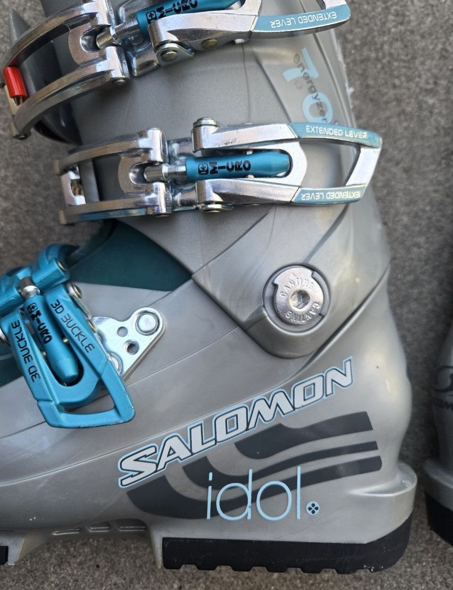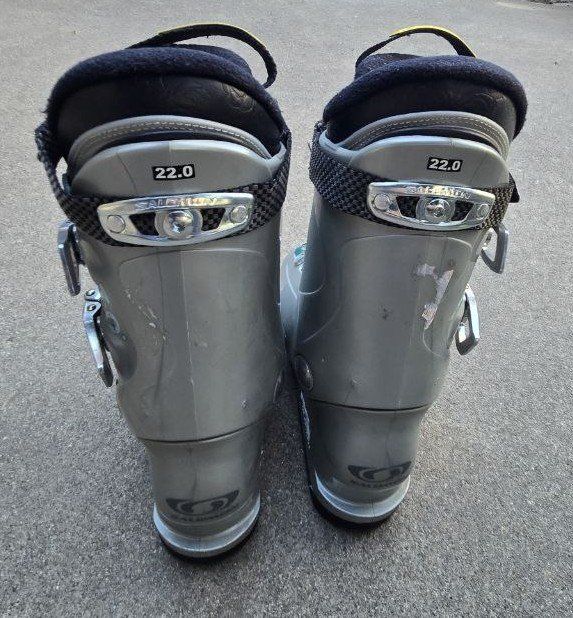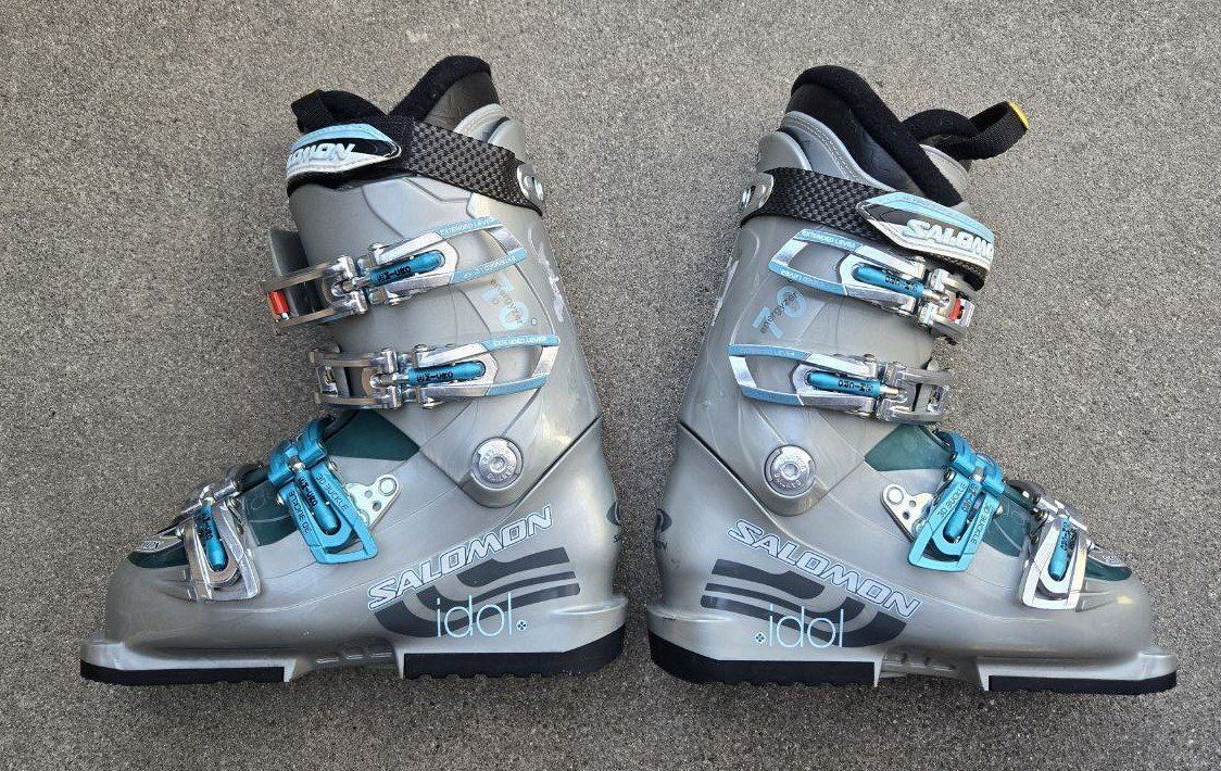 VenmoGreat Kid's Salomon Idol 70 Energyzer downhill ski boots. Kid's Shoe Size 2-2.5. Mondo 22-22.5. Sole length 267mm. Text please.