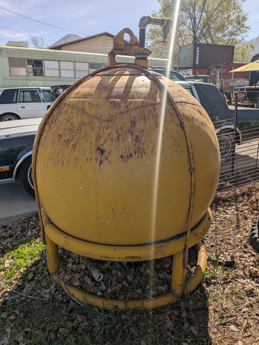 steel tank with attached stand. was used in a well system. measures about 5' in diameter. I can help load it.