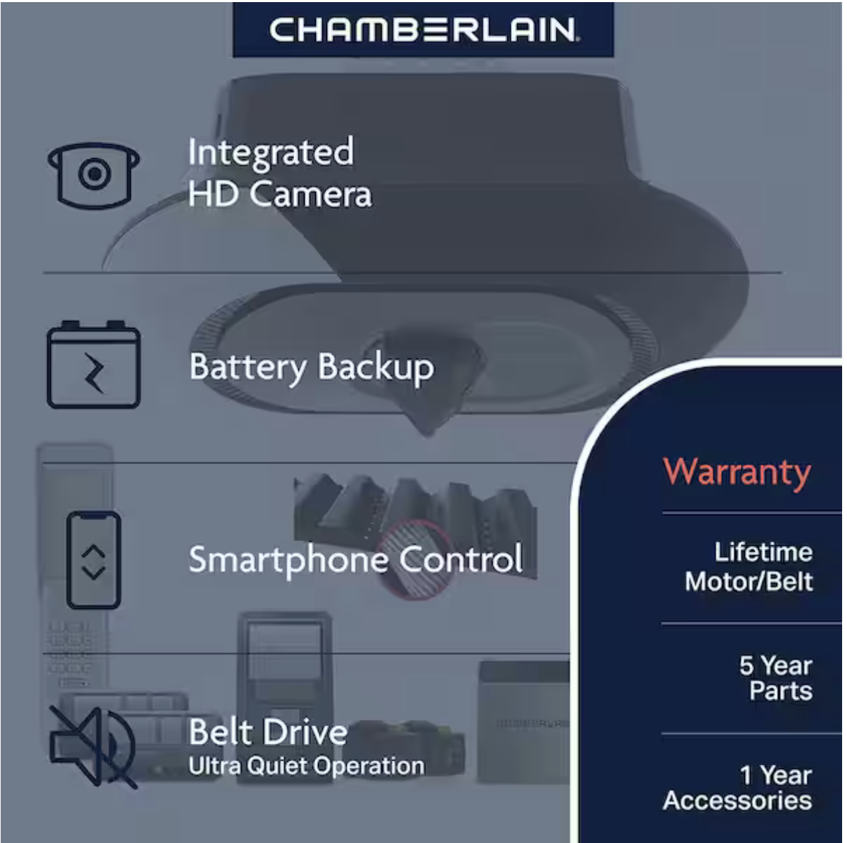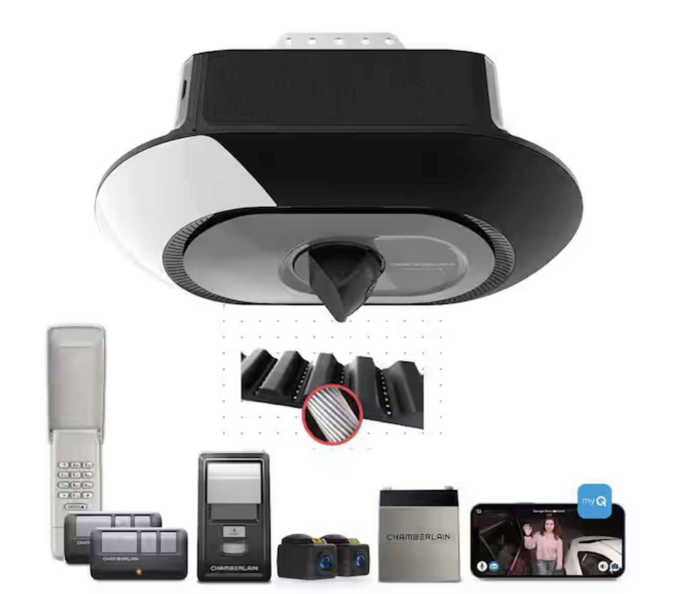 Chamberlain Secure View 3/4 HP LED Quiet Belt Drive Smart Garage Door Opener with Integrated Security Camera and Battery Backup