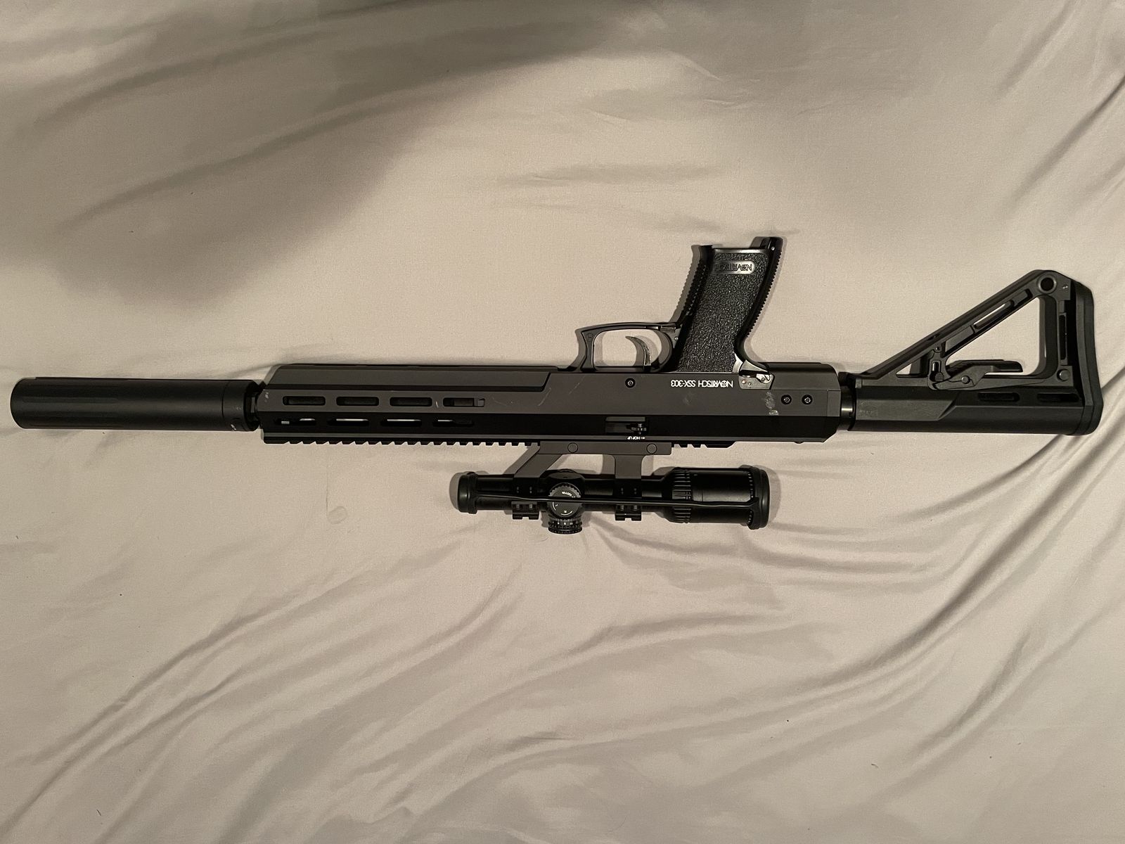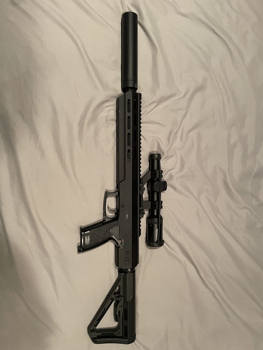 Mildly used comes with $100 scope two mags and suppressor. Has been a great gun, incredibly quiet for how far it shoots I hate to see it go but never use it any and it deserves to get used and not collect dust