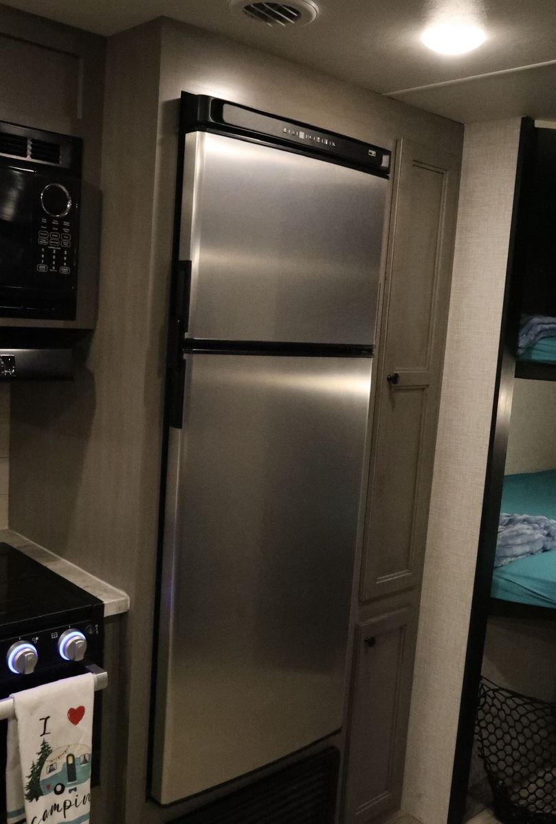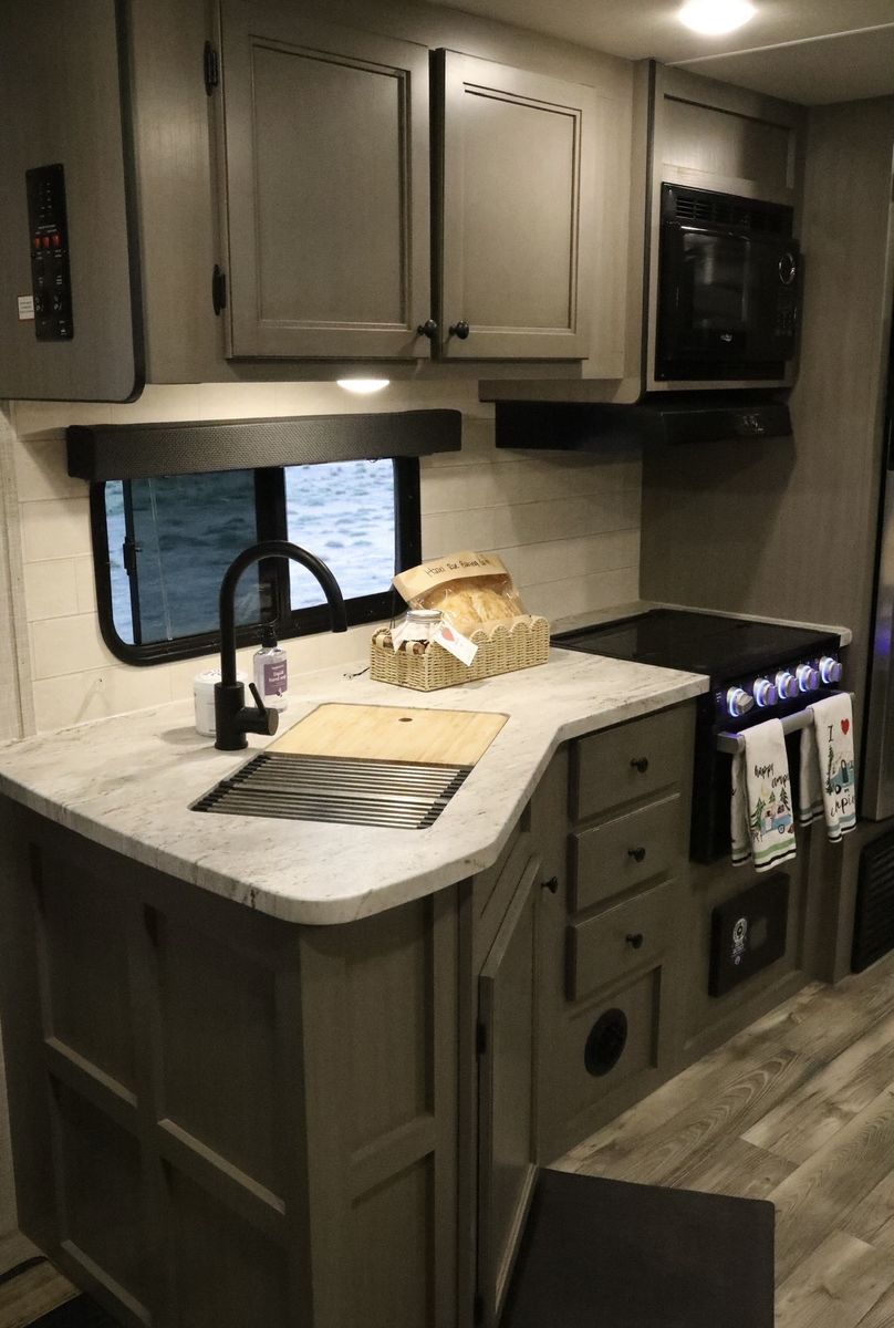 Inside, you’ll find a fully stocked kitchen, linens, and a complete bathroom setup, so you can pack light and focus on enjoying your trip. Luna features a TV with speakers both inside and outside the trailer, perfect for enjoying music or movie nights wherever you are.