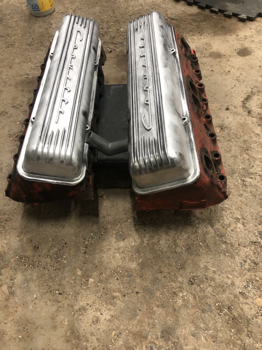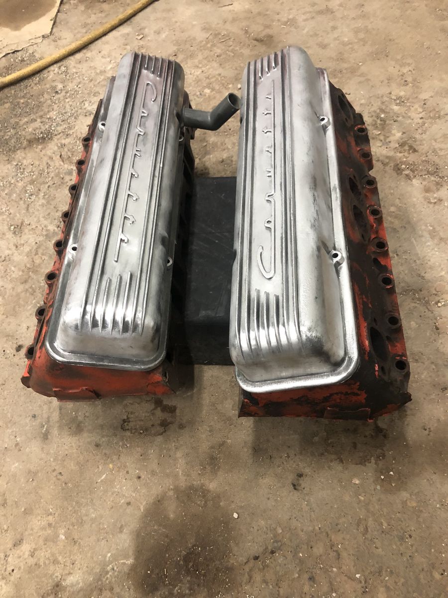 PayPal1955 to 1956 Chevrolet Corvette, heads with Polish aluminum finned valve covers with Corvette right across the Top of it add some horsepower to your small block Chevy 300 horses about what these put out Call Brad 435-851-0540 possible trades let me know what you got