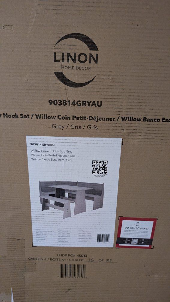 VenmoBRAND NEW IN BOX Linon Willow Corner Nook Set sets up to 6 people. great for smaller areas. Retails for $450.