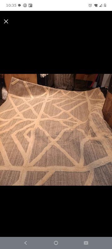 New Accent Rug. Handwoven. Geometric Design Gray and Ivory. Wool. 10 mm Pile. Backed with Cotton. Rug Pad Recommended. Spot Clean Only. Inches: 96″ W x 120″ D x 0.39″ H Ashley Karah Gray Large Rug