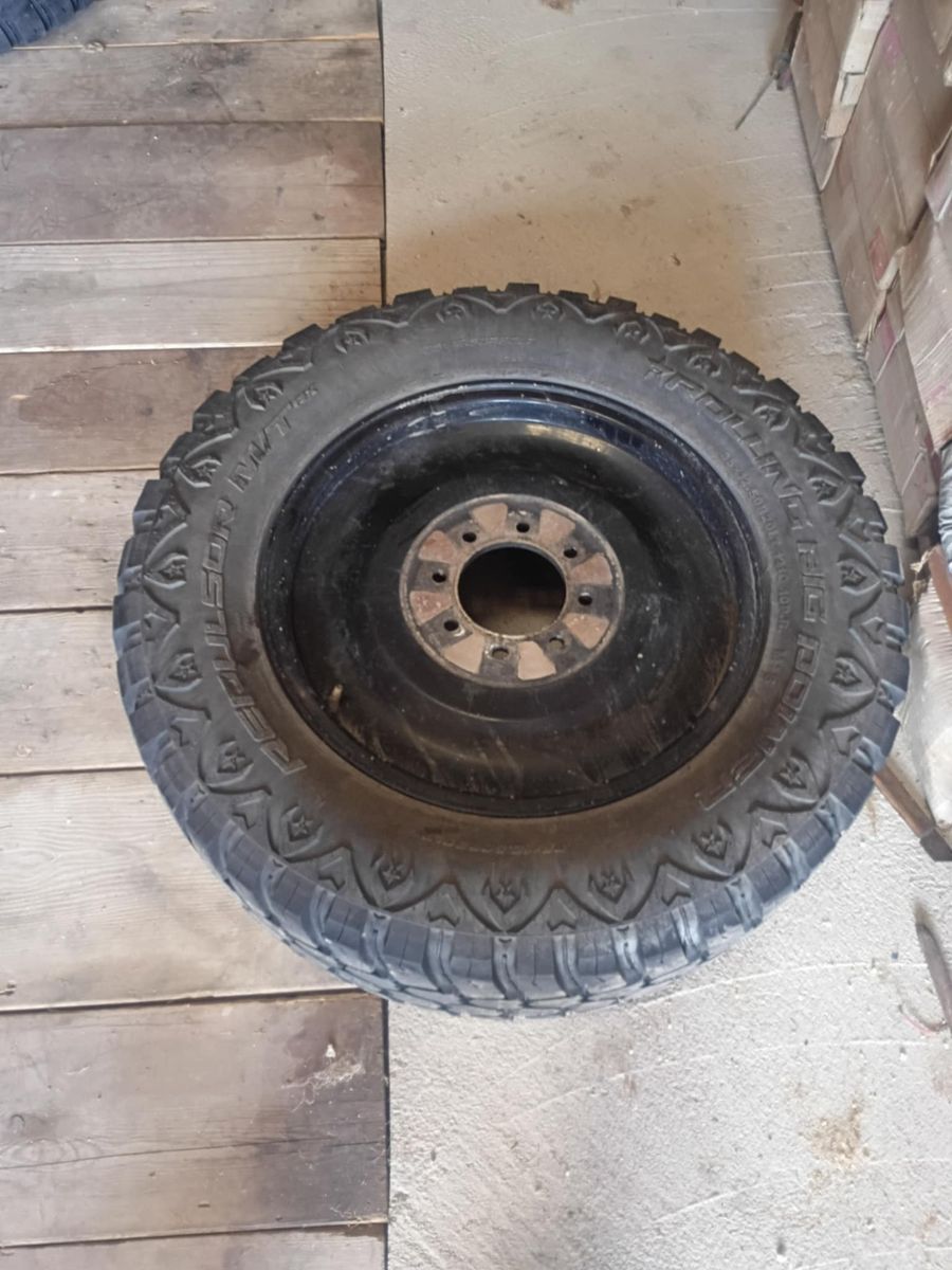 20" rims, 35x12.50 R20, for a dually truck. The set of 6 rims are in good condition; some tires are in fair condition. Had them on a 2014 Ram 3500.