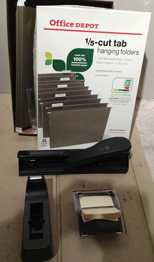 note books, laptop stand, pen, markers, Hole puncher,... all for 20$